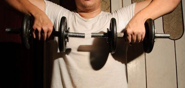 - رفع الأوزان جانبيًا حتى يكونا مستويين مع الكتفين.