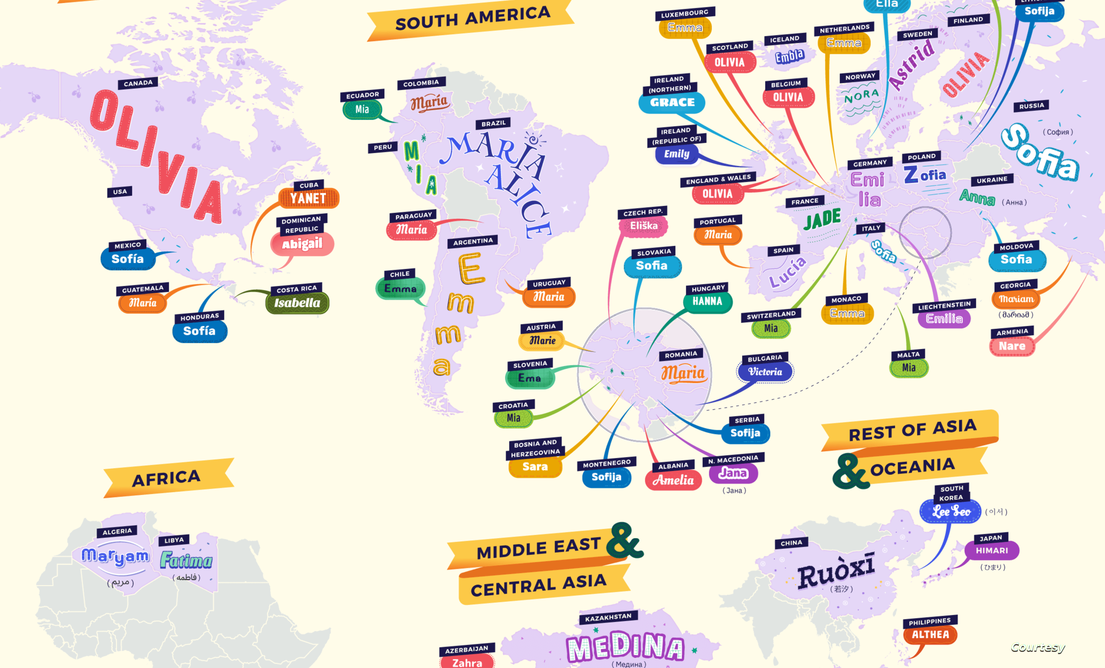 وأجرى القائمون على هذا الإحصاء، أبحاثا باللغة الأم لكل بلد للكشف عن التقارير المحلية التي أفصحت عن أسماء الأطفال الأكثر شيوعًا للفتيان والفتيات.