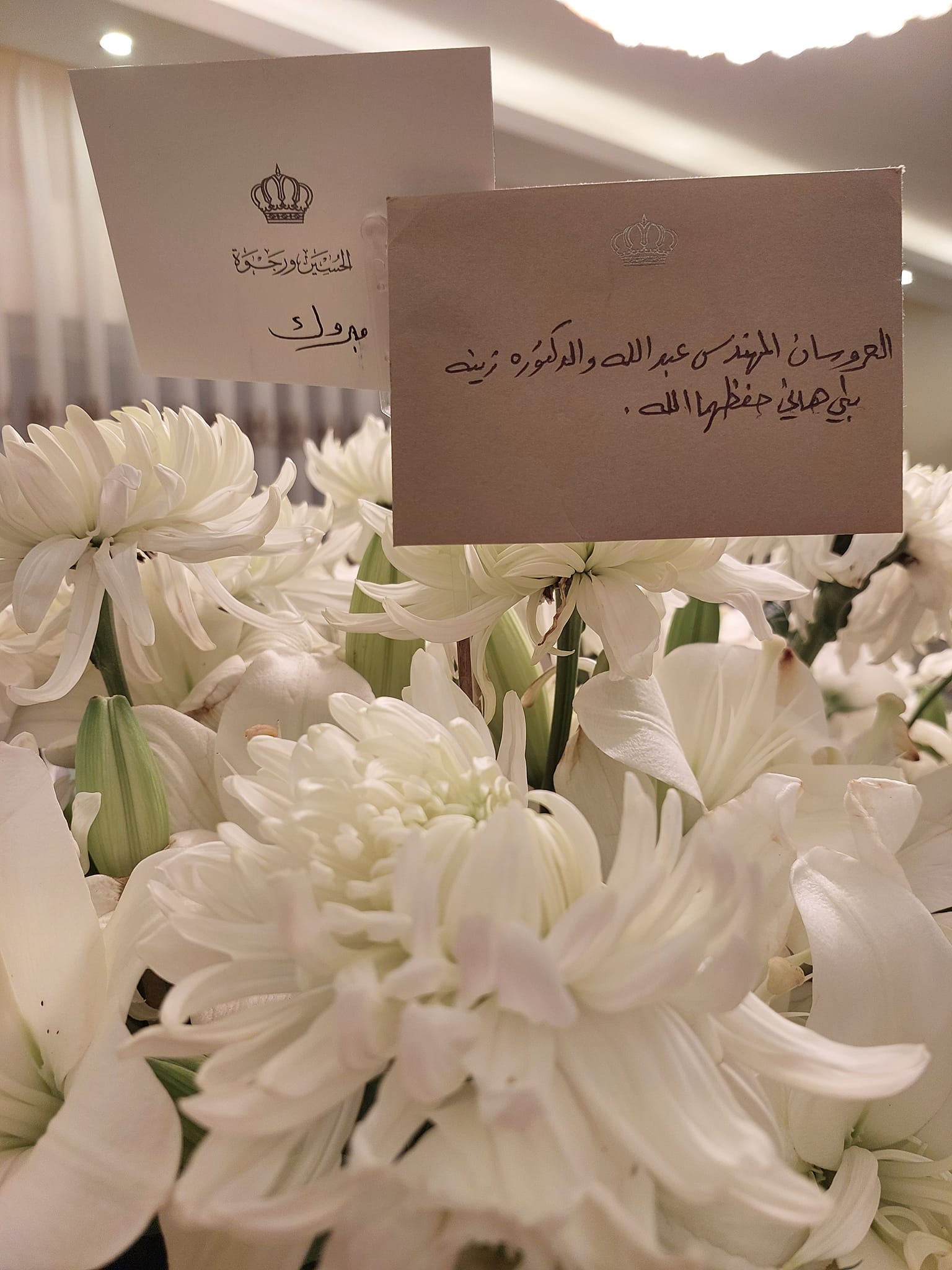 عمون - فاجأ الأمير الحسين بن عبد الله الثاني، ولي العهد، والأميرة رجوة، عروسين بإرسال باقة ورد لهما بيوم زفافهما.