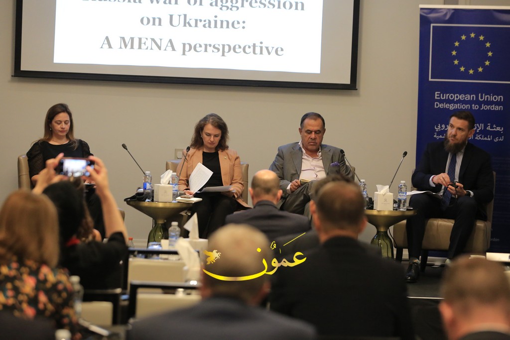 عمون - اقام وفد الاتحاد الاوروبي لدى المملكة الاردنية الهاشمية والسفارة الاوكرانية في عمان اليوم الثلاثاء، جلسة نقاشية بعنوان "حرب روسيا العدوانية على أوكرانيا: منظور منطقة الشرق الأوسط وشمال أفريقيا".