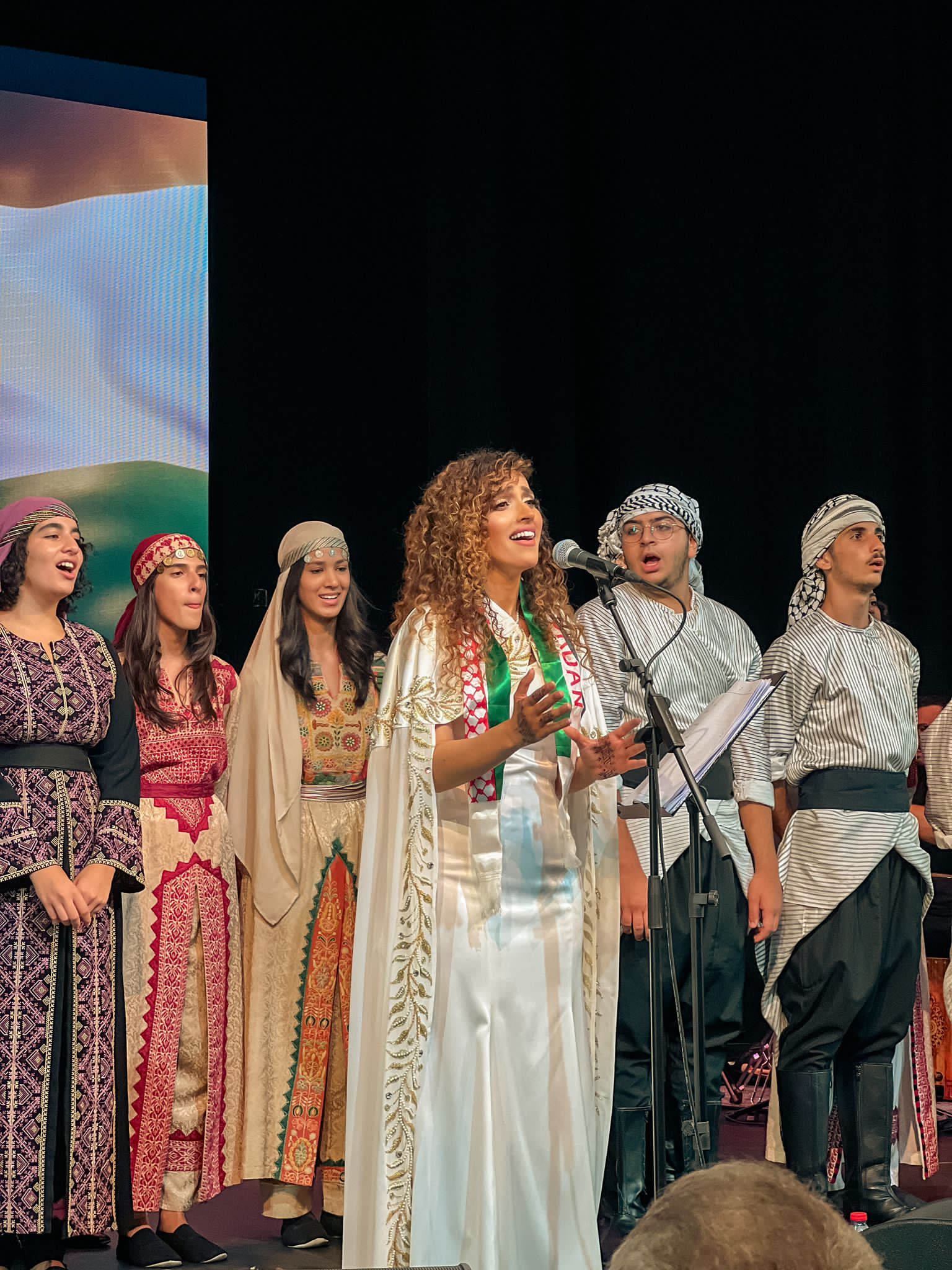 وتناقلت بمزيج من المشاعر التراث الفلكلوري الفلسطيني ،حيث حضر الحفل حشد من كل من الاردن وفلسطين ومن الخارج ، وختمت خلف الحفل بأغنية موطني موطني،