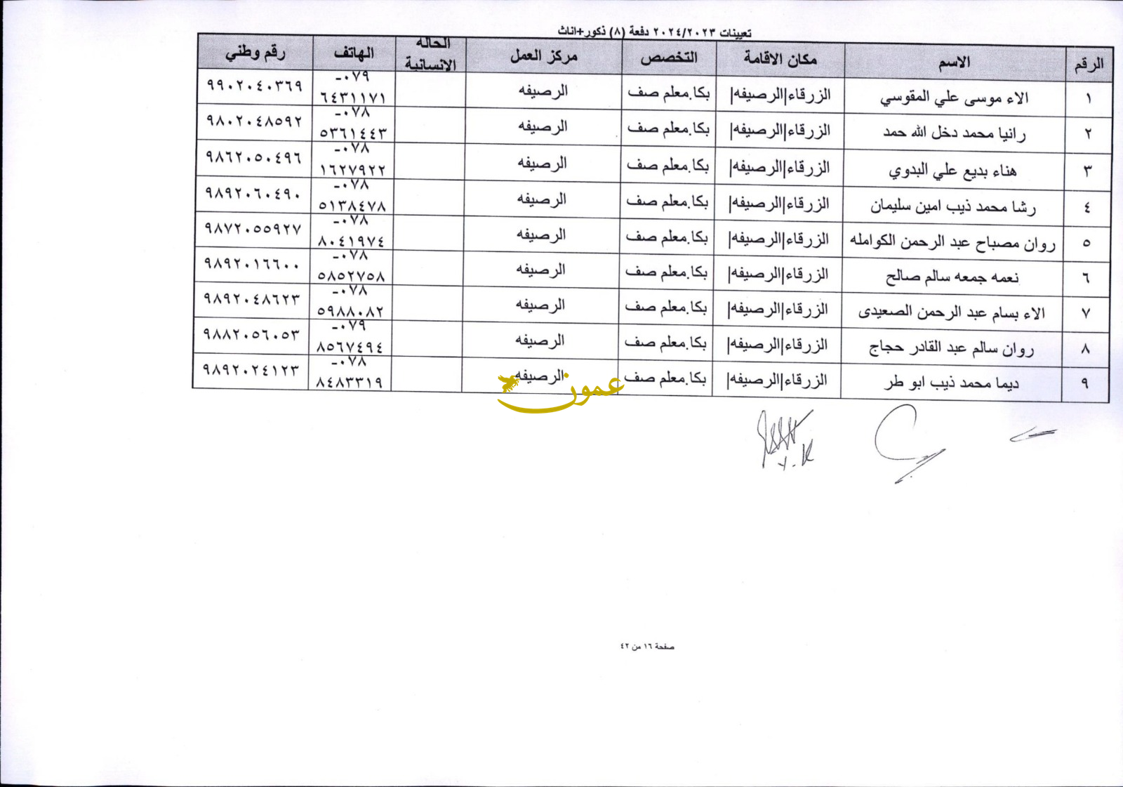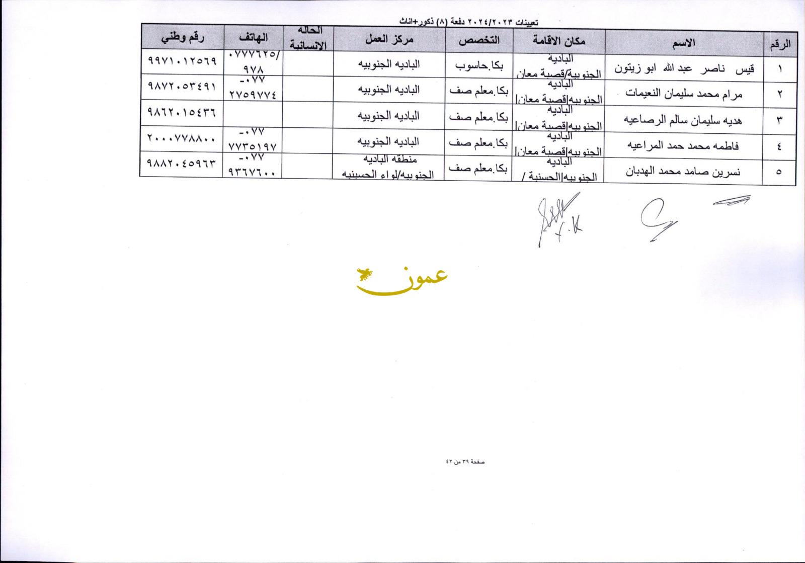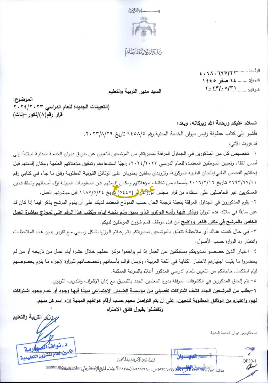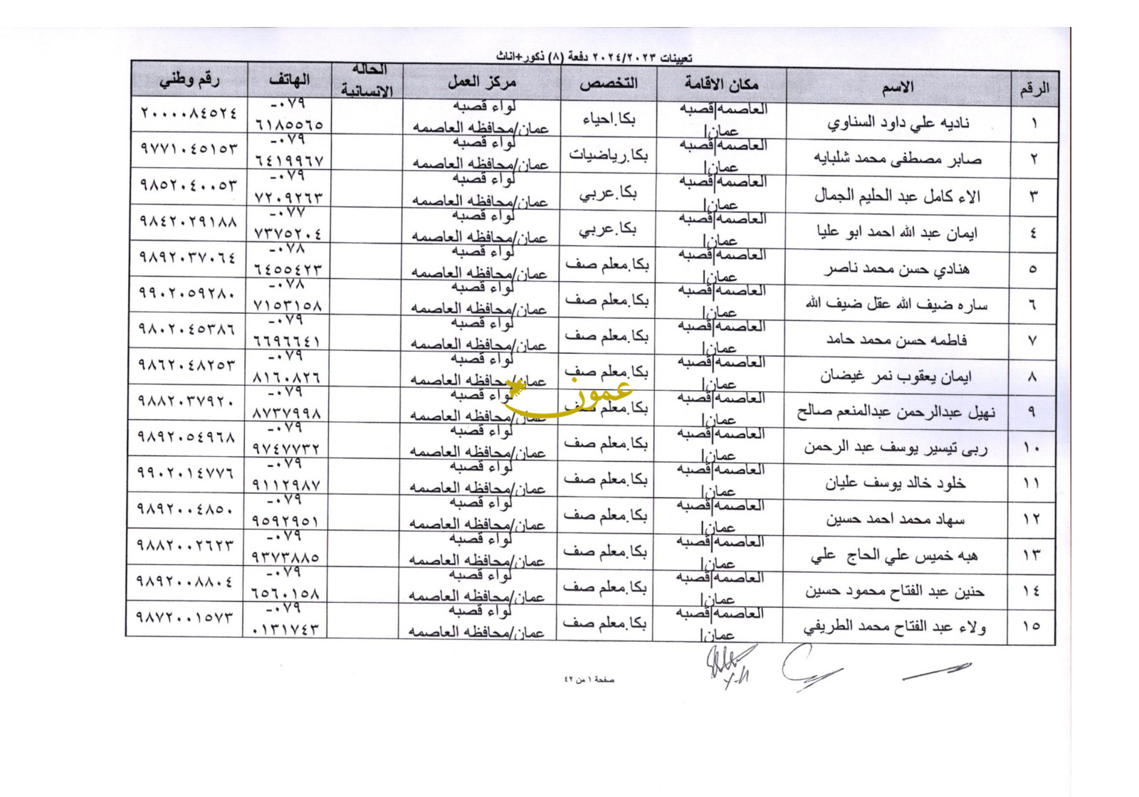 عمون - ينال المعاني - نشرت وزارة التربية والتعليم، دفعة تعيينات جديدة في ملاك الوزارة. |
