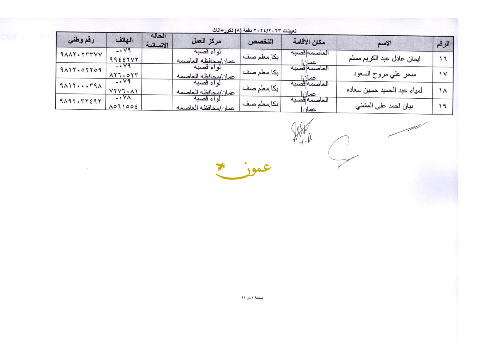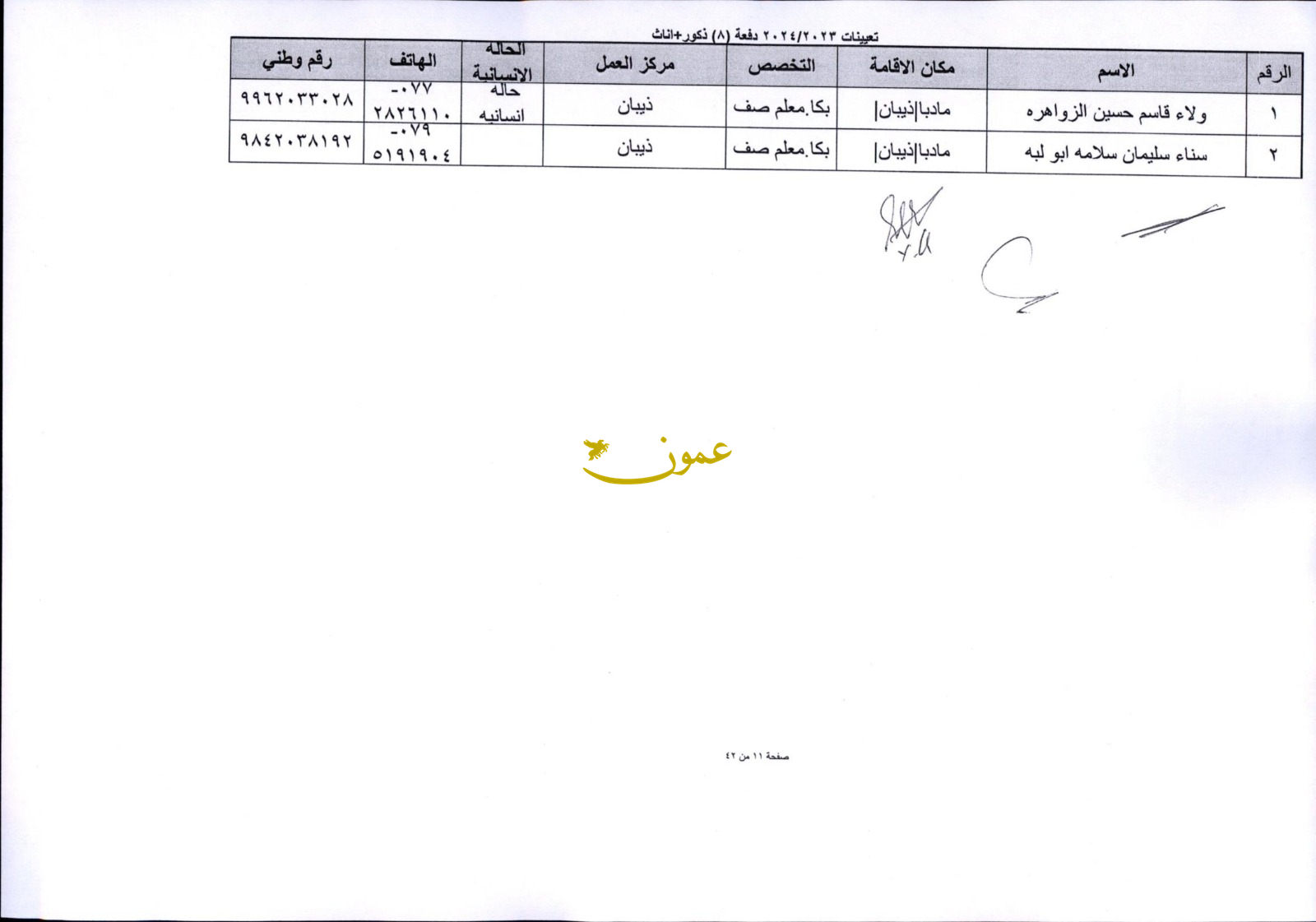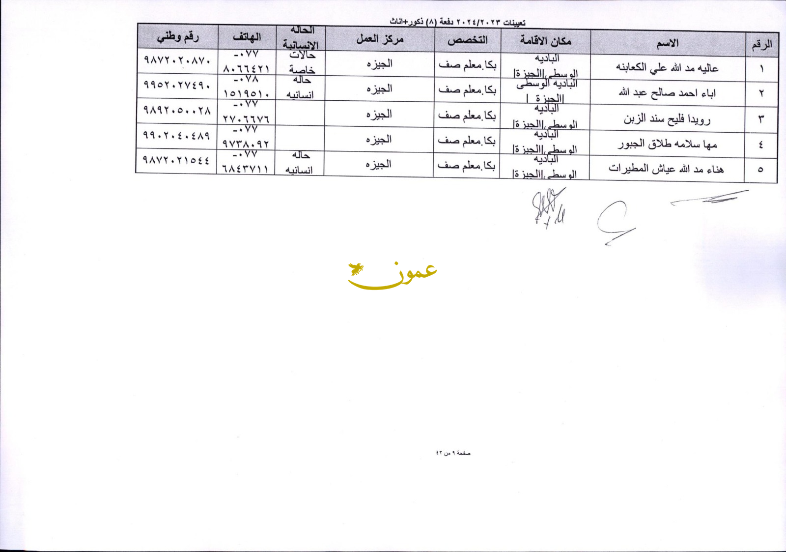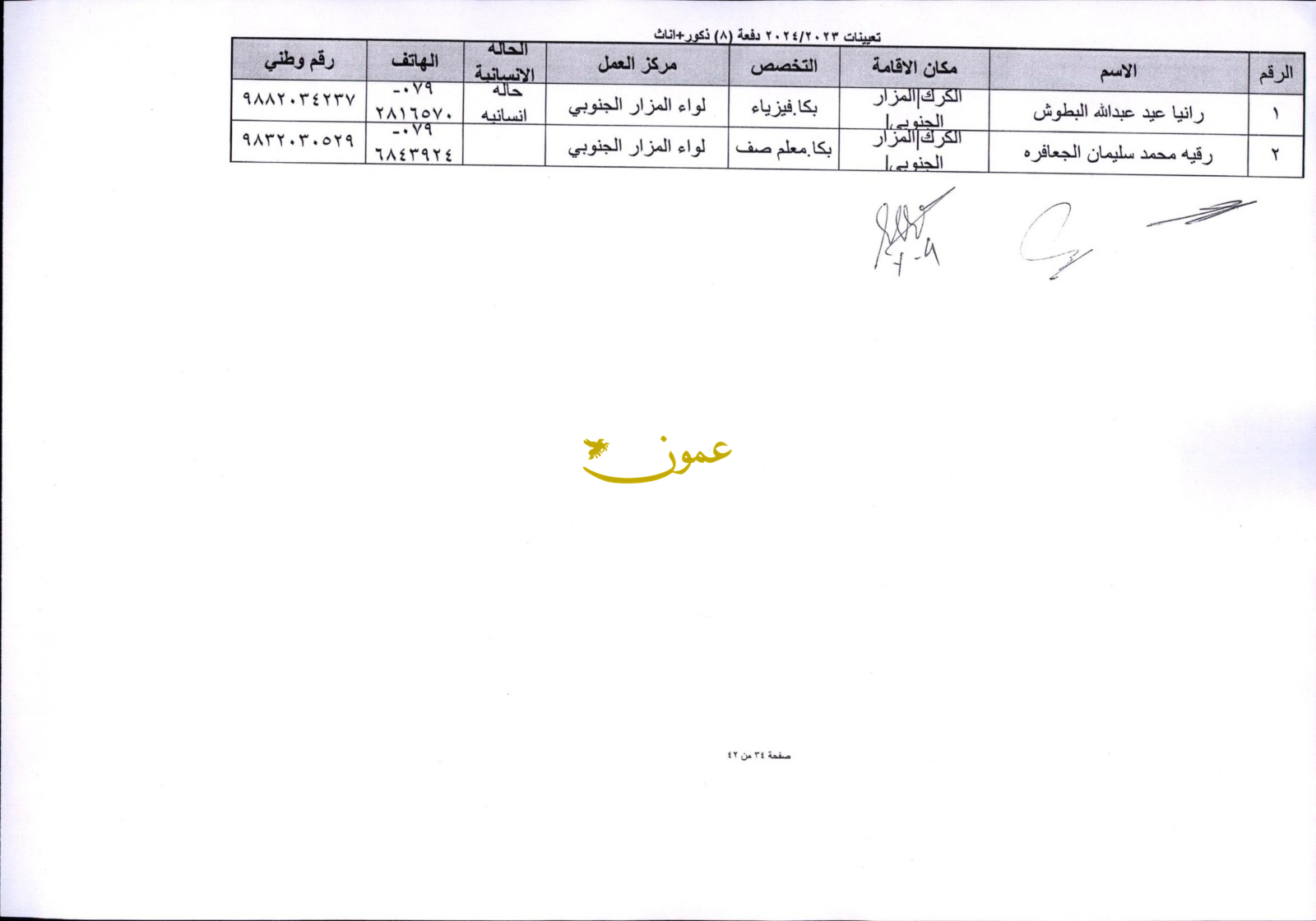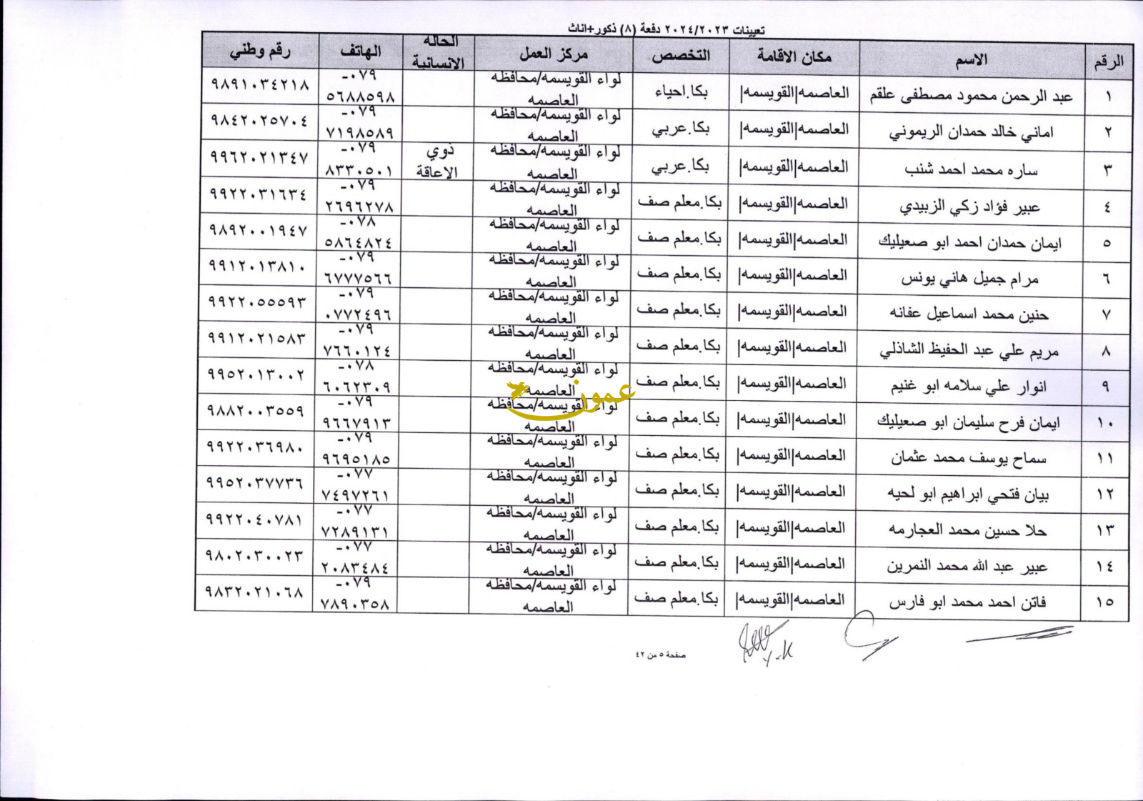 عمون - ينال المعاني - نشرت وزارة التربية والتعليم، دفعة تعيينات جديدة في ملاك الوزارة. |