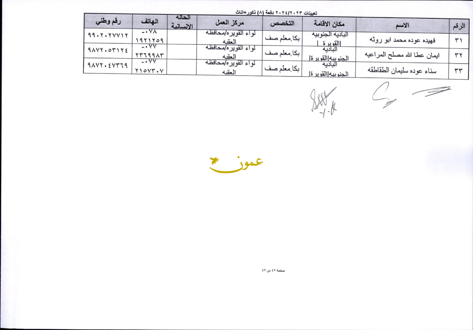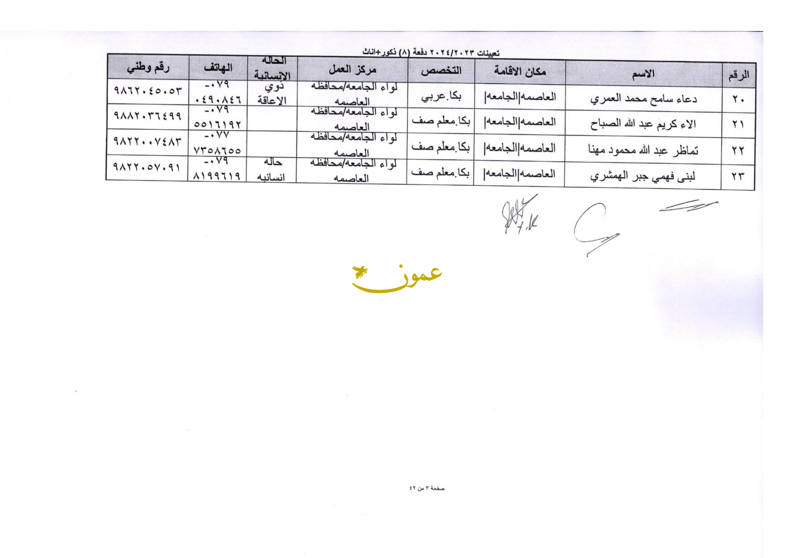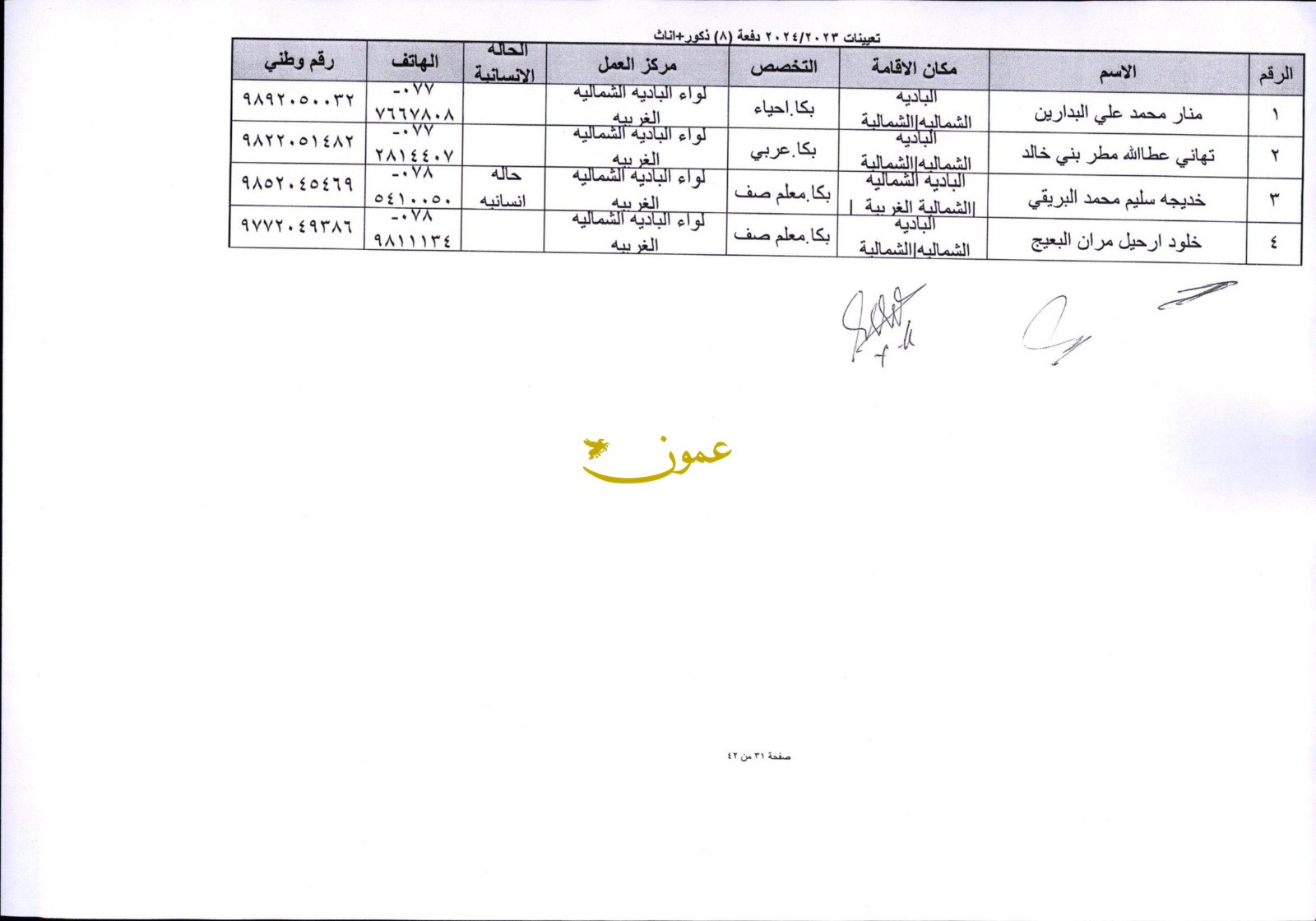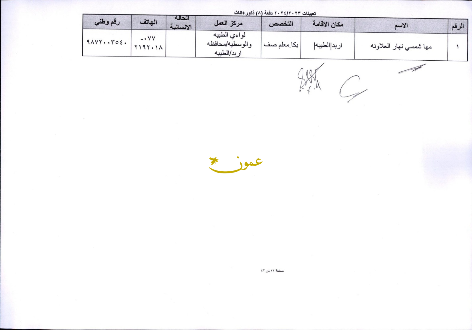 عمون - ينال المعاني - نشرت وزارة التربية والتعليم، دفعة تعيينات جديدة في ملاك الوزارة. |