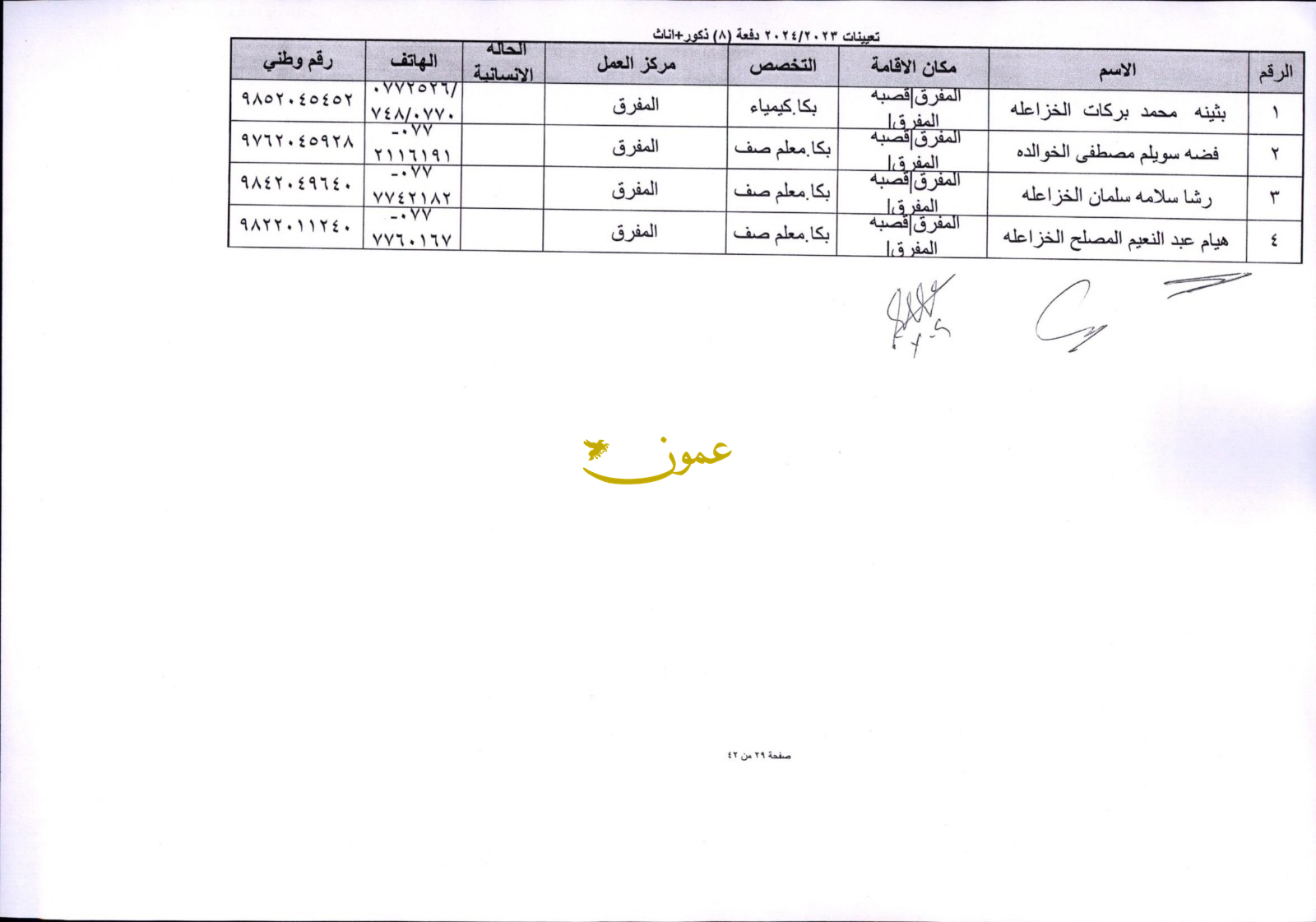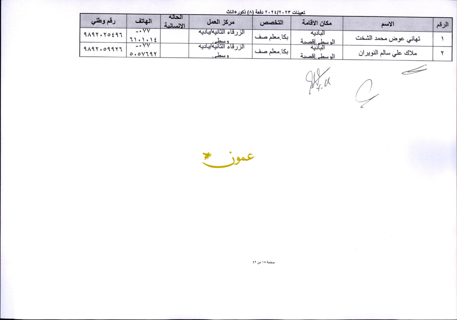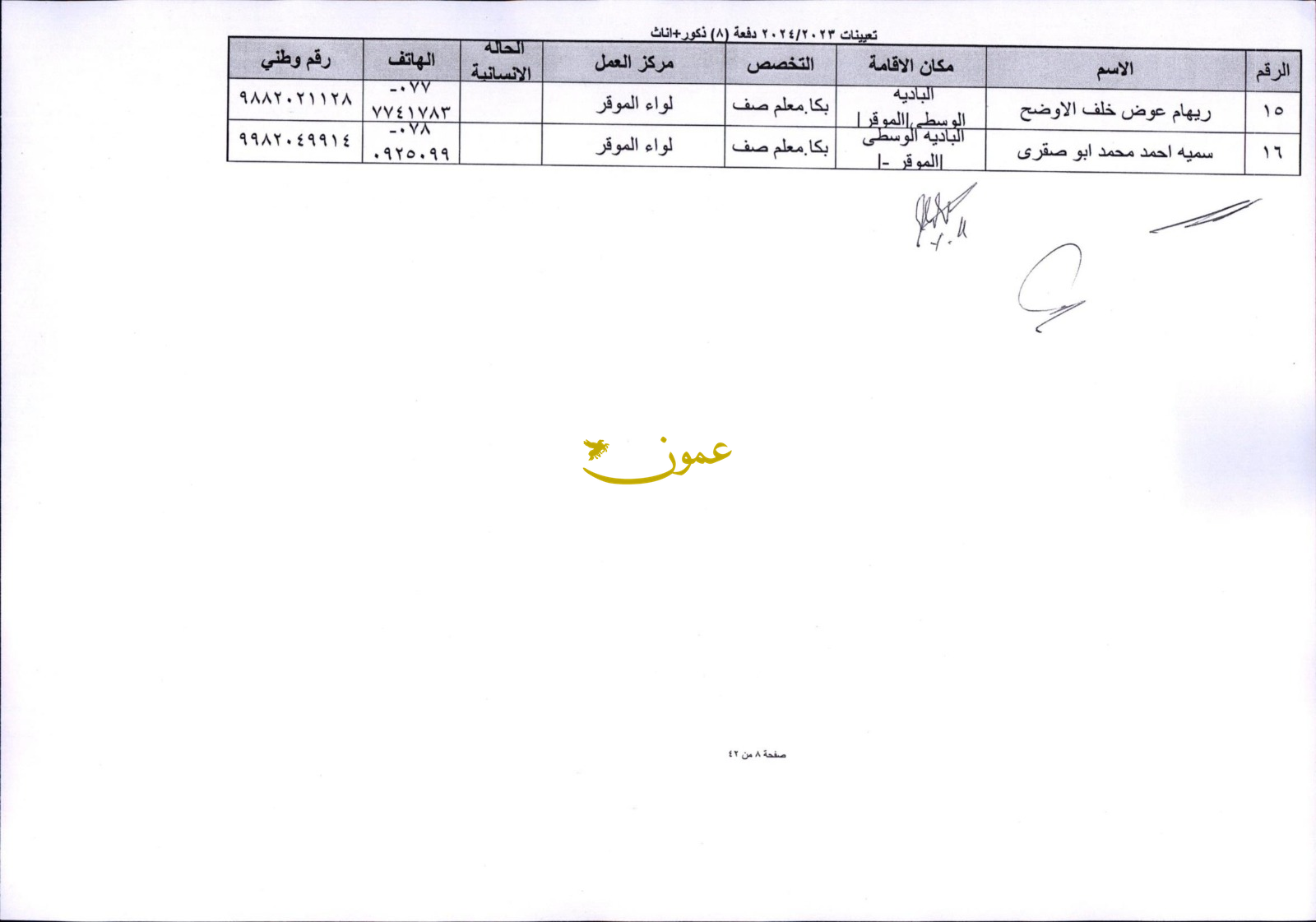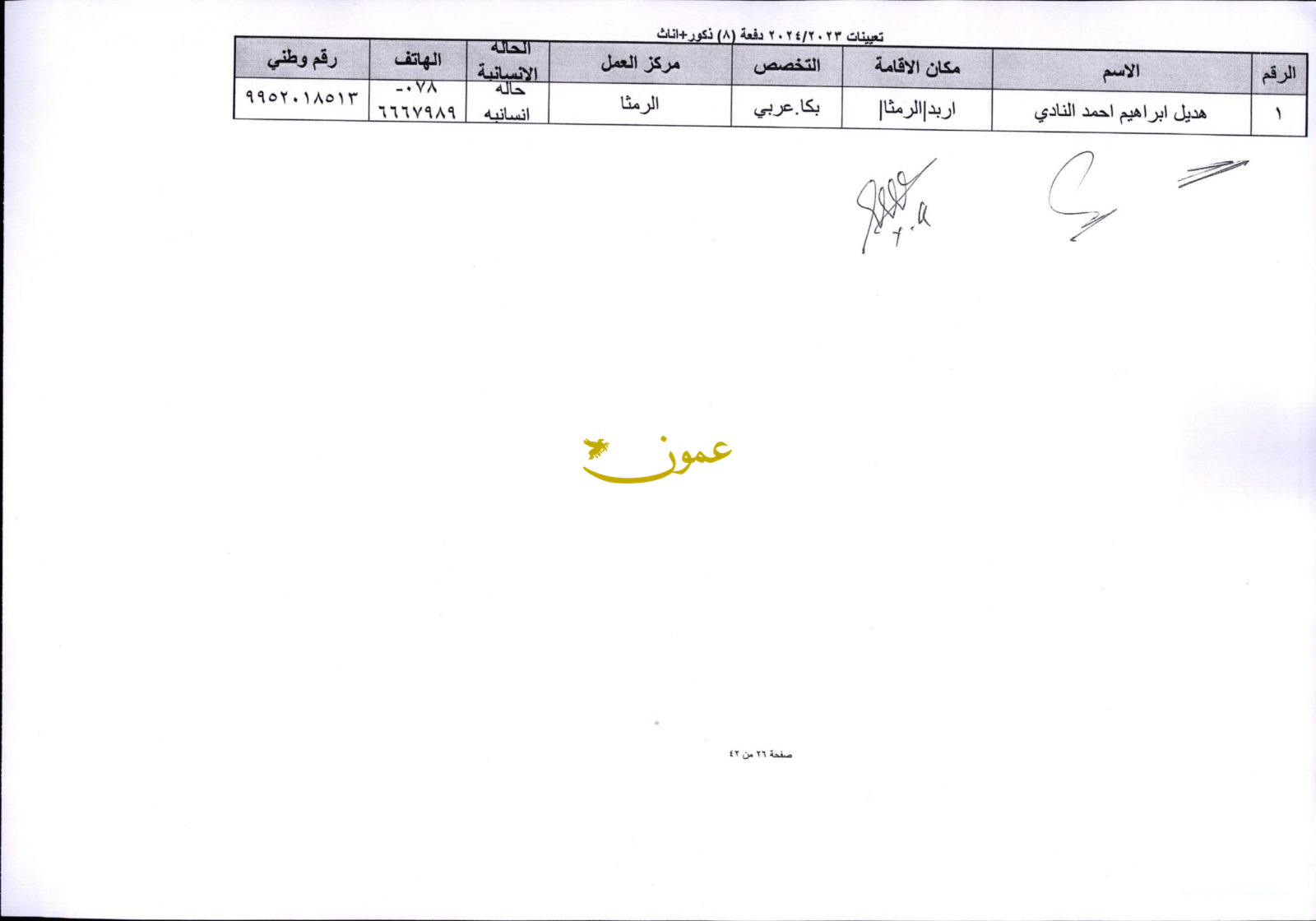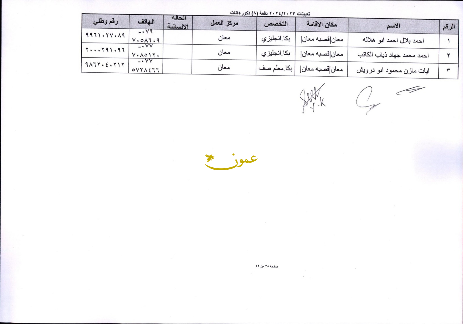 عمون - ينال المعاني - نشرت وزارة التربية والتعليم، دفعة تعيينات جديدة في ملاك الوزارة. |