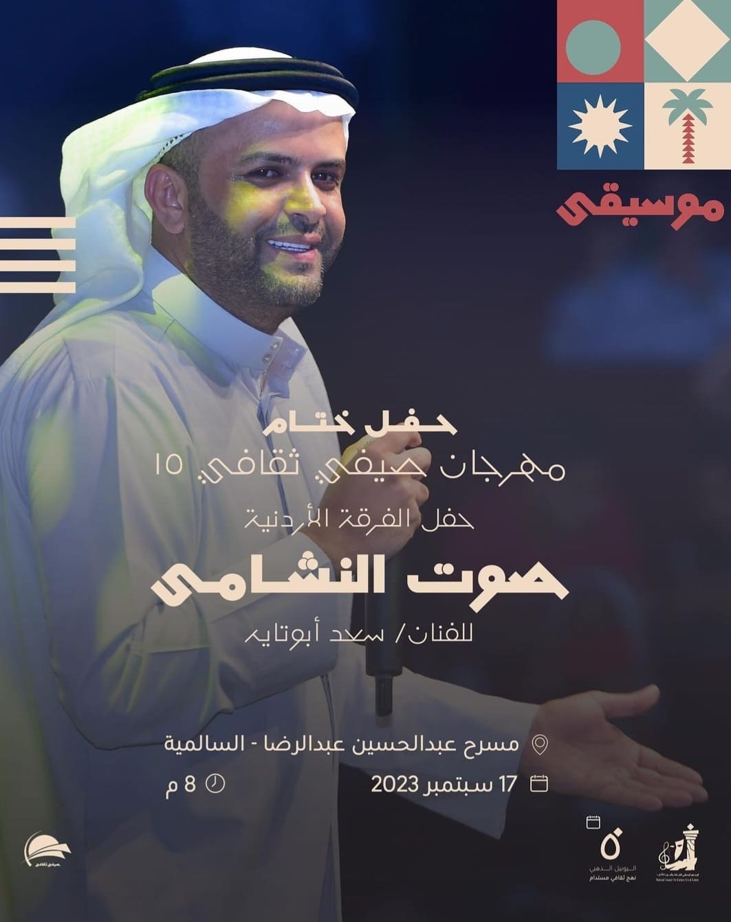 عمون - يستعد النجم الأردني سعد أبو تايه صوت النشامى للمشاركة في ختام فعاليات مهرجان صيفي ثقافي بدولة الكويت، وبدعوة من المجلس الوطني للثقافة والفنون والآداب وذلك في تاريخ 17_9_2023 الساعة 8 مساءً على مسرح عبد الحسين عبد الرضا في السالمية..