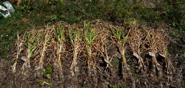 بعد التجفيف، قم بتنظيف الثوم وقص الجذور والأوراق الجافة. يمكنك تخزين الثوم في مكان بارد وجاف لفترة طويلة.