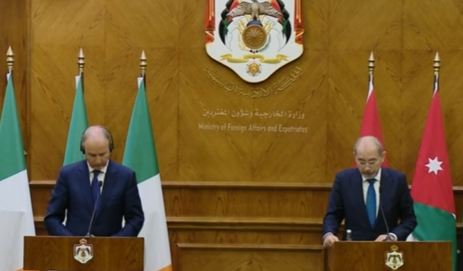 وأكد الصفدي استمرار تطور علاقات الصداقة مع إيرلندا، "البلد الذي تربطه بالمملكة علاقات صداقة قوية، وتجمعها معه مواقف واضحة في دعم جهود تكريس الأمن والاستقرار في المنطقة، ولها تحركات مستمرة ومواقف ثابتة في دعم جهود تحقيق السلام العادل والدائم على أساس حل الدولتين وفق المرجعيات المعتمدة وقرارات الشرعية الدولية".