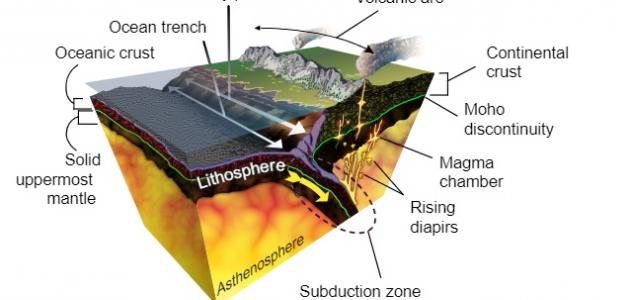 2. البراكين: تشجع ظاهرة الغوص على نشاط البراكين في المناطق المجاورة عندما تنصهر الصخور القارية والصفيحة المحيطية تحت الضغط والحرارة، يمكن للمواد الصهرية الصعود إلى السطح وتشكيل براكين.