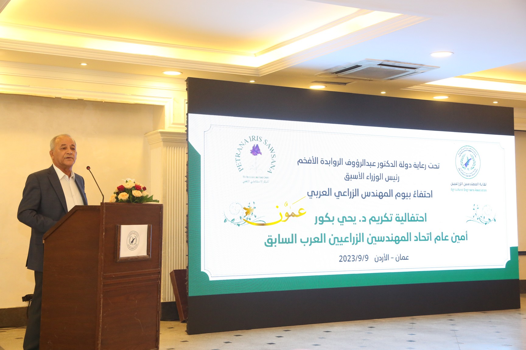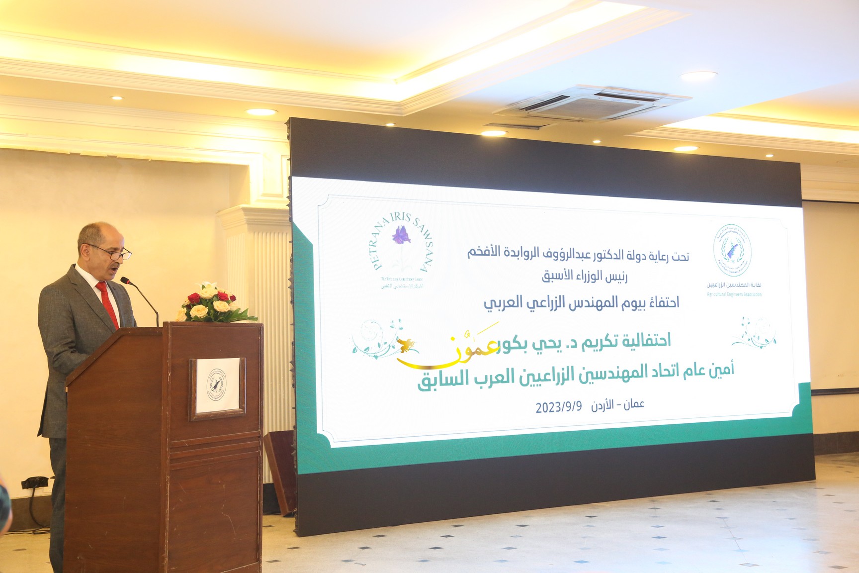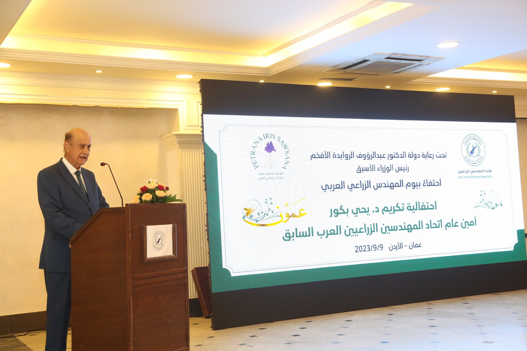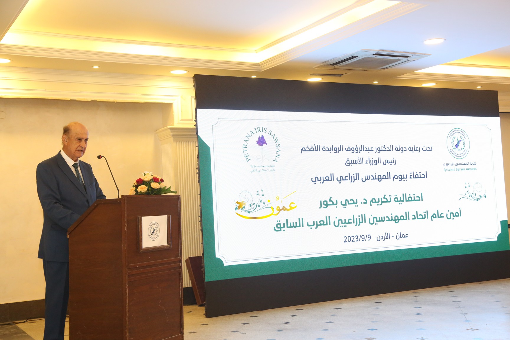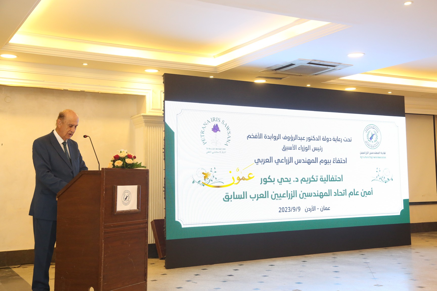 عمون - رعى رئيس الوزراء الأسبق عبدالرؤوف الروابدة، اليوم السبت، تكريم أمين عام اتحاد المهندسين الزراعيين العرب السابق الدكتور يحيى البكور، احتفالا بيوم المهندس الزراعي العربي. |