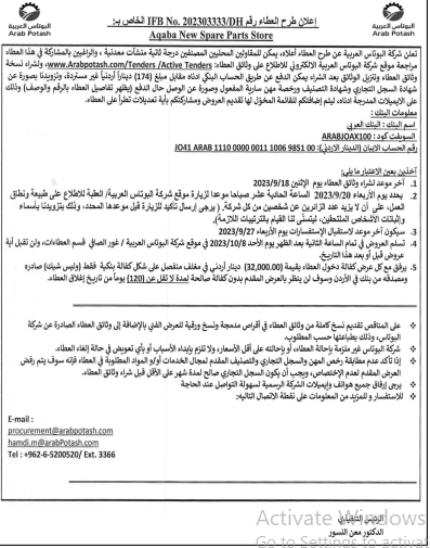 عطاء صادر عن شركة البوتاس العربية