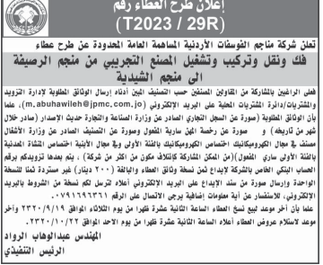عطاء صادر عن شركة مناجم الفوسفات