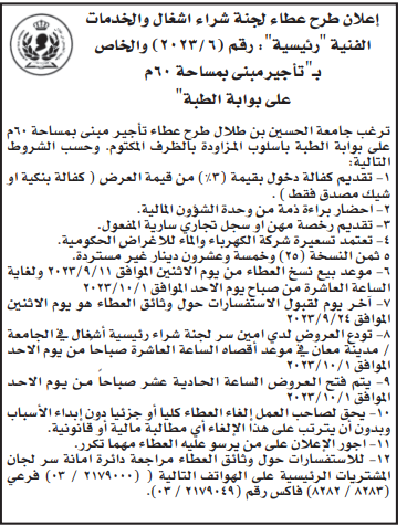عطاء صادر عن جامعة الحسين بن طلال