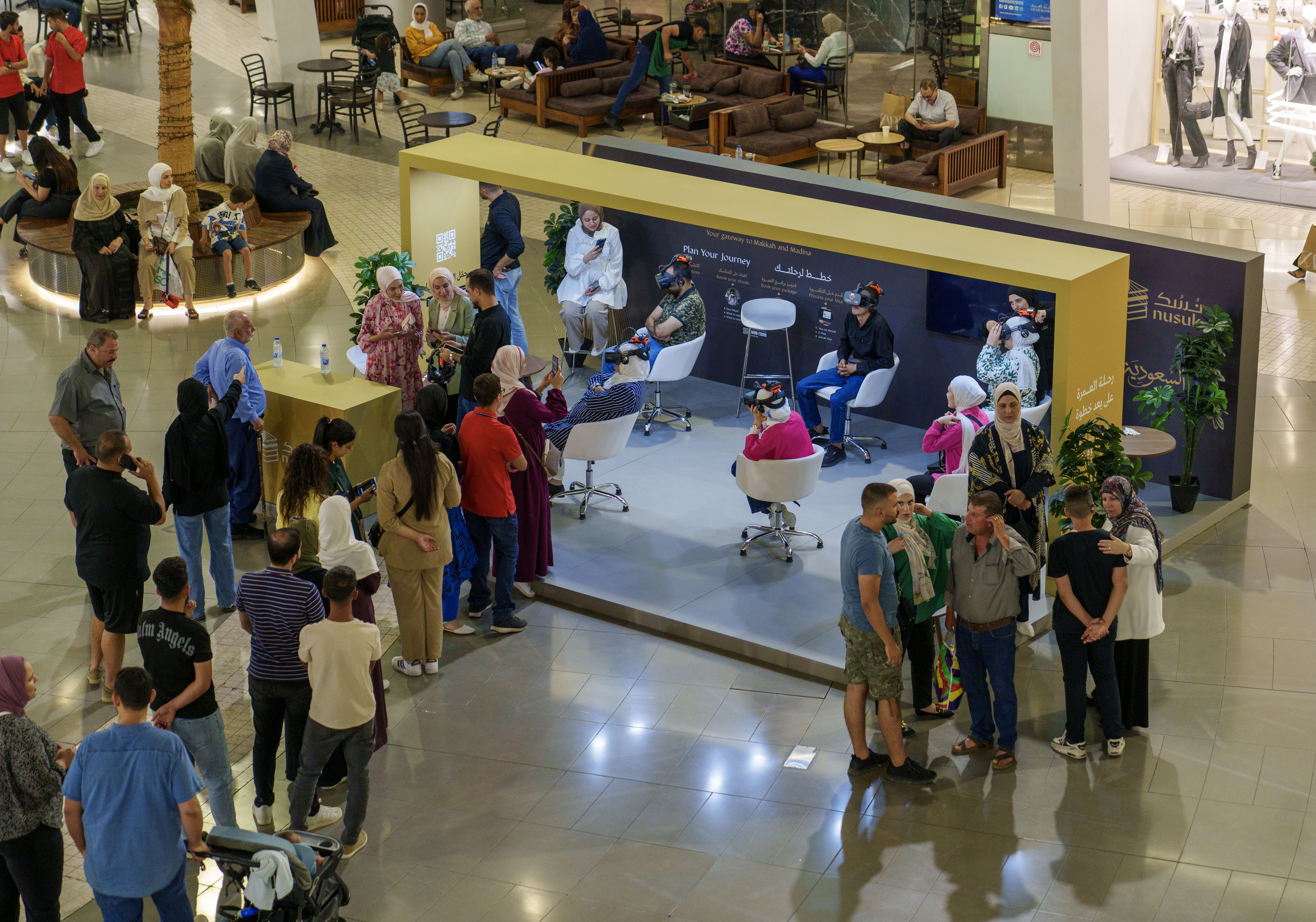 وضم جناح "نسك" التعريفي في العبدلي مول، تجربة لمشاهدة قصصًا عن بعثة الرسول صلى الله عليه وسلم، وقصة الإسراء والمعراج، والهجرة النبوية الشريفة، بتقنية الواقع الافتراضي 360