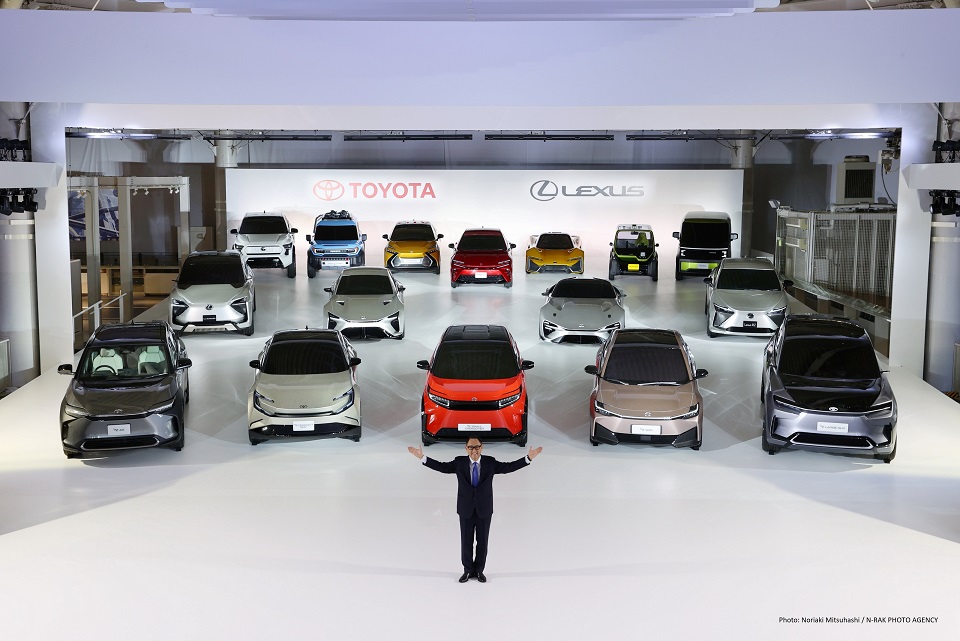 وتماشيًا مع سعي شركة تويوتا إلى جعل جميع مصانعها محايدة للكربون بحلول عام 2035، تستمر مجموعتها من السيارات الصديقة للبيئة في النمو. وتهدف الشركة أيضًا إلى تطوير مجموعة شاملة من 30 طرازًا من السيارات الكهربائية التي تعتمد على البطاريات وطرحها بحلول عام 2030، بما فيها سيارات الركاب والسيارات التجارية، وتحقيق مبيعات عالمية سنوية تبلغ 3.5 مليون سيارة في الإطار الزمني نفسه. وهذا يشمل خططًا على المدى الأقصر؛ إذ أعلنت الشركة في نيسان 2023 عن هدفها المتمثل في طرح 10 طرازات من السيارات الكهربائية التي تعتمد على البطاريات وبيع 1.5 مليون سيارة كهربائية بحلول عام 2026. ومن المتوقع أن تؤدي جهود الشركة إلى خفض انبعاثات الكربون بنسبة 33% بحلول عام 2030، وبنسبة 50% بحلول عام 2035 مقارنةً بمستويات عام 2019.