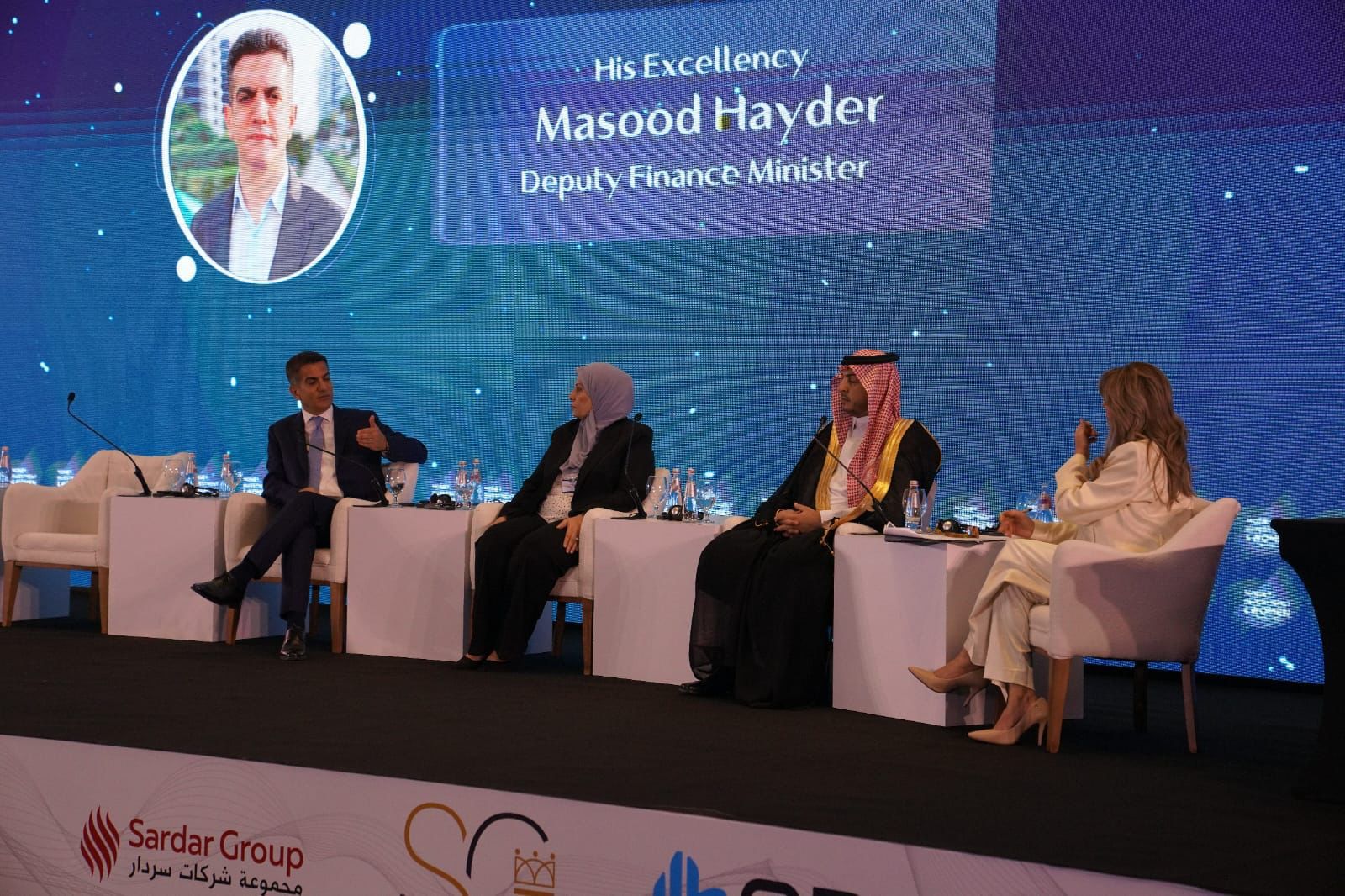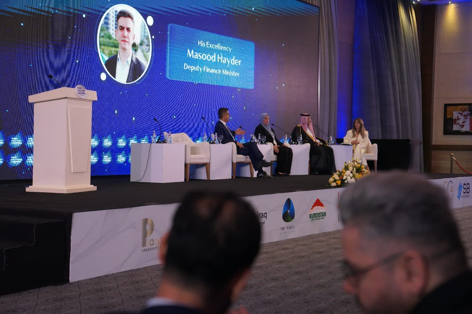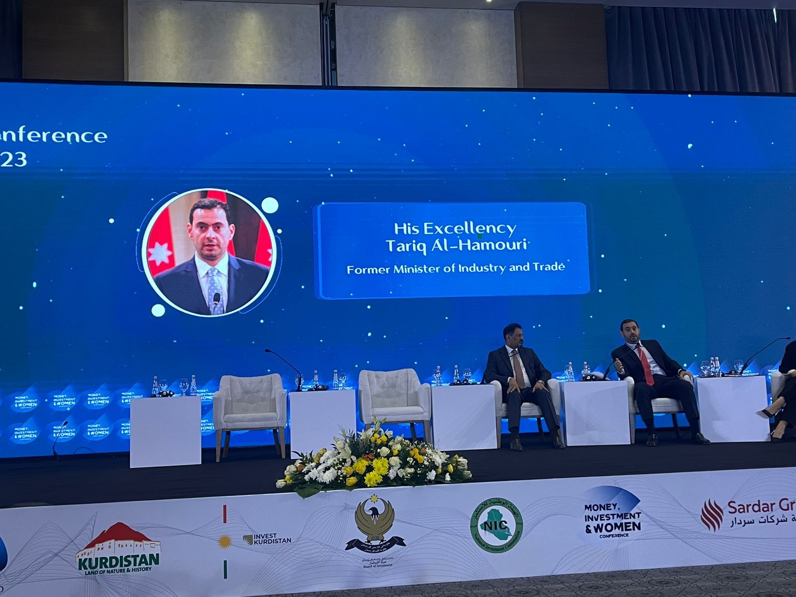 وكما نخص بالشكر وزير الداخية العراقي السيد عبد الأمير الشمري، وسفيرة جمهورية العراق في المملكة العربية السعودية السيدة صفية سهيل، ورئيس الهيئة الوطنية للاستثمار في العراق السيد حيدر مكية، ورئيس هيئة الاستثمار في كردستان السيد محمد شكري.