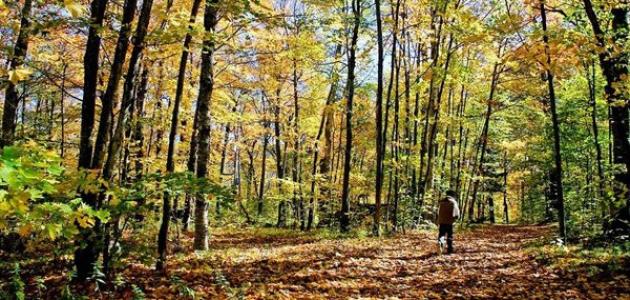 2. **سقوط الأوراق**: مع بداية فصل الخريف، تبدأ أوراق الأشجار في التساقط بسبب تغير درجات الحرارة والإضاءة. يتساقط الأوراق على الأرض ويُشكلون طبقة سميكة من الأوراق المتساقطة.