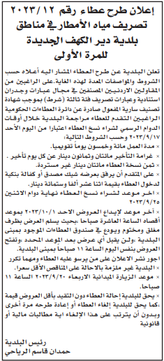مطلوب تصريف مياه الامطار في مناطق بلدية دير الكهف