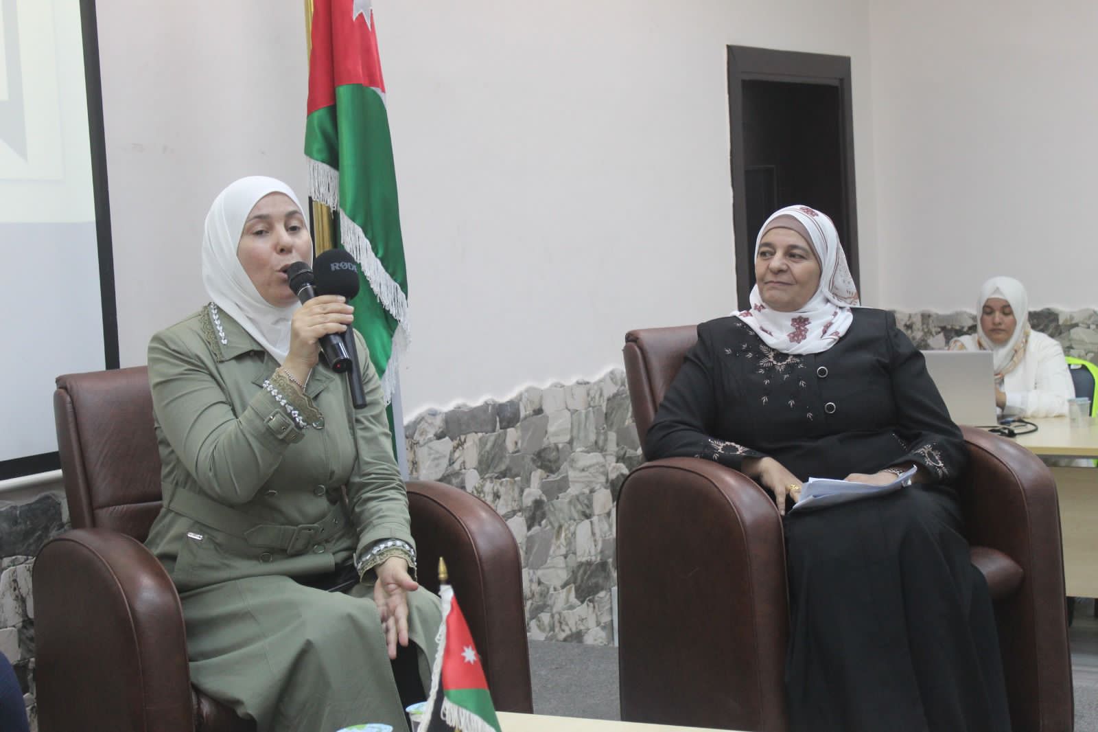 وقدم هذا المحاور أعضاء الحزب من فرع العقبة بسمة الشباطات ورندة المعايطة.