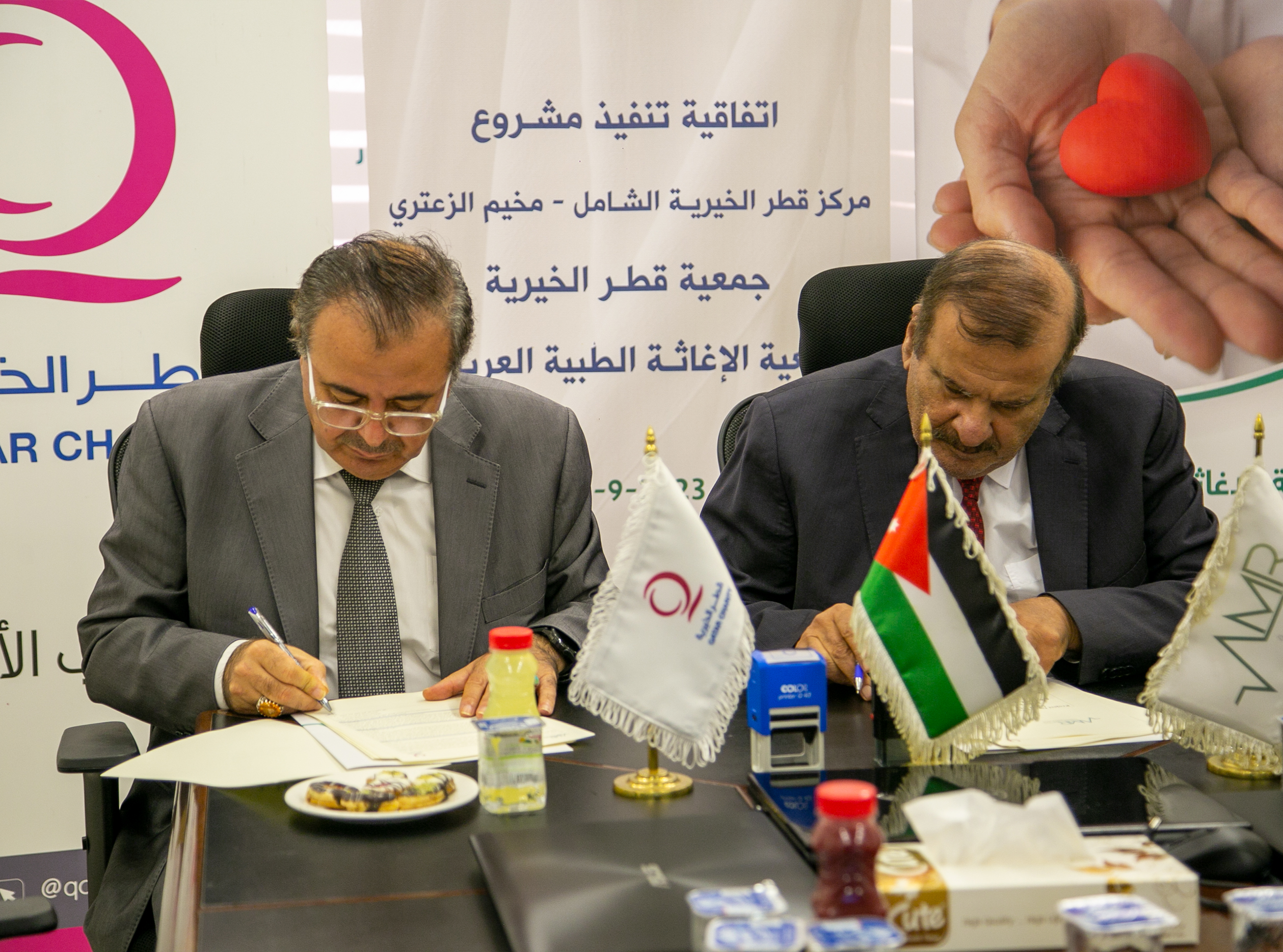 ووقع كل من رئيس الإغاثة الطبية العربية الدكتور عوني البشير والدكتور منذر الحاج حسن مدير مكتب قطر الخيرية في الأردن، الاتفاقية ممثلين عن الجمعيتي، بحضور المدير التنفيذي للجمعية جمال الرفايعة، وثواب عامر مديرة البرامج والمشاريع، ومن طرف قطر الخيرية حضر إياد الرشدان مدير البرامج، ودانا ناصر الدين مديرة المشاريع.