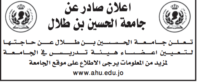 جامعة الحسين بن طلال بحاجة لتعيين اعضاء هيئة تدريسية