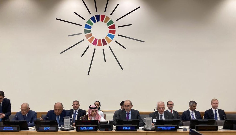 وكان وزير الخارجية السعودي سمو الأمير فيصل بن فرحان، والممثل الأعلى للشؤون الخارجية والسياسة الأمنية في الاتحاد الأوروبي جوزيب بوريل، وأمين عام جامعة الدول العربية أحمد أبو الغيط، افتتحوا الاجتماع، الذي تحدث في جلسته الافتتاحية أيضاً، وزير الخارجية المصري سامح شكري. وشارك في الاجتماع، الذي عقد على هامش أعمال الأسبوع رفيع المستوى للدورة الثامنة والسبعين للجمعية العامة للأمم المتحدة في نيويورك، وزراء خارجية وممثلو نحو خمسين دولة، وممثلون عن منظمة التعاون الإسلامي، ومجلس التعاون لدول الخليج العربية، والبنك الإسلامي للتنمية، ومكتب الرباعية الدولية، والبنك الأوروبي للاستثمار، بالإضافة إلى المفوض العام لوكالة الأمم المتحدة لإغاثة وتشغيل اللاجئين الفلسطينيين (الأنروا)، ووكيلة الأمين العام للأمم المتحدة لإدارة الشؤون السياسية وبناء السلام.