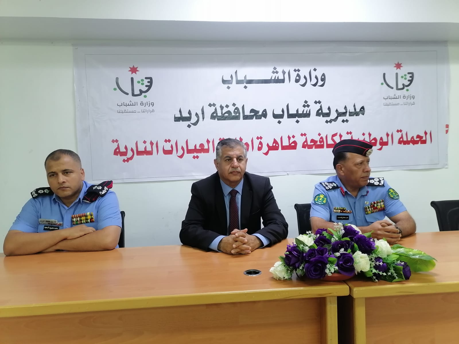 وشهدت الحملة التي أقيمت في بيت شباب إربد، بحضور مدير شرطة إربد العميد عمر الكساسبة، ومدير شباب إربد يحيى المومني، مشاركة واسعة من الأندية والهيئات الشبابية والمراكز الشبابية التابعة لمديرية الشباب التي وقع ممثلوها على وثيقة منع إطلاق العيارات النارية، ورفض هذه الظاهرة السلبية.