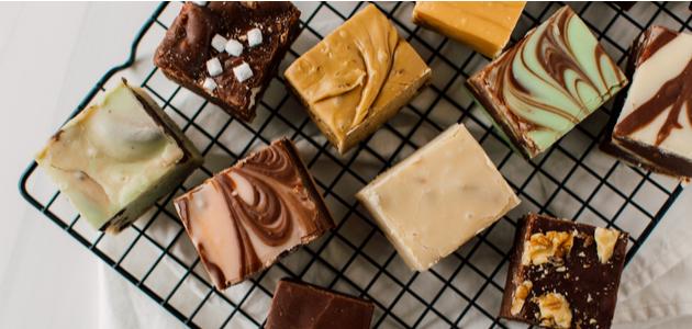 - **الفادج كيك:** الفادج كيك يُقدم عادةً على شكل قطع صغيرة أو أكواب فردية مع طبقة خارجية محمرة وداخل ناعم مشبع بالشوكولاتة.