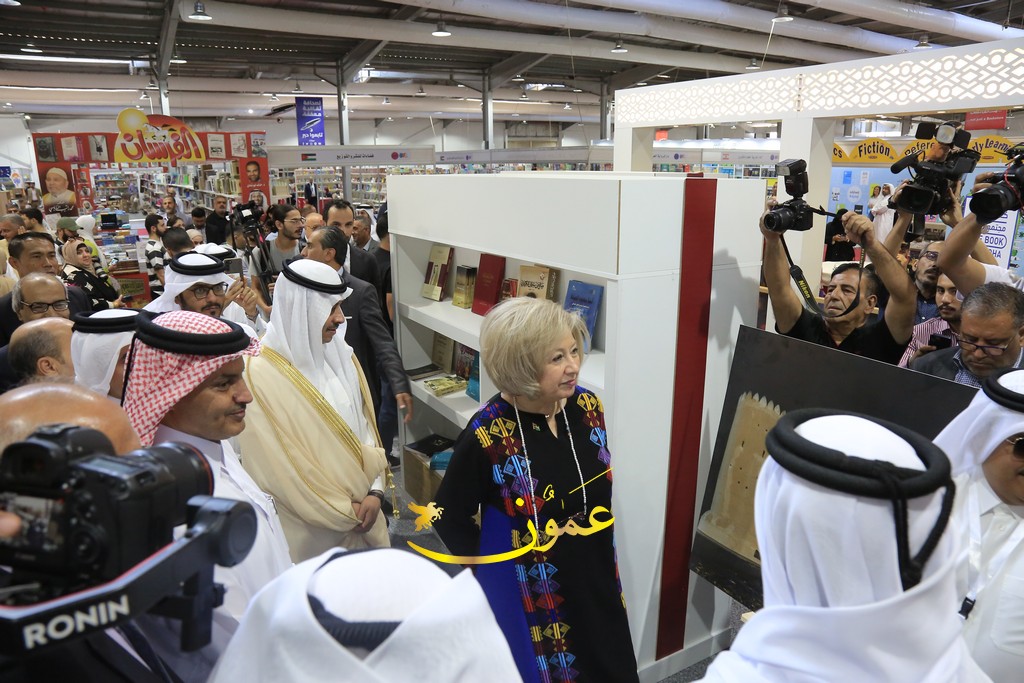 وبعد الافتتاح، جالت وزيرة الثقافة برفقة السفير القطري على أجنحة المؤسسات الثقافية القطرية المشتركة، وجناح دولة قطر ضيف شرف المعرض لهذا العام حيث استمعت من المشرف على الجناح، ومدير معرض الدوحة الدولي للكتاب جاسم البوعينين الى طبيعة المشاركة القطرية، وما يضمه الجناح من إصدارات وزارة الثقافة القطرية، ولوحات فنية لفنانين قطريين.