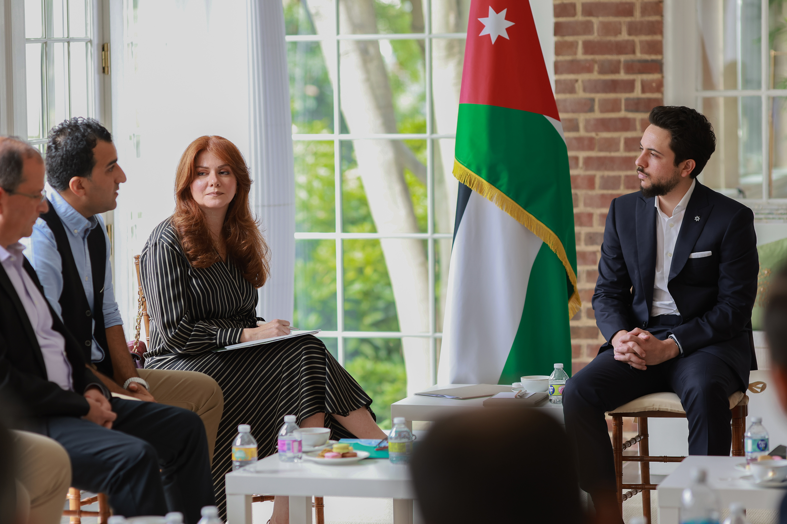عمون - اجتمع سمو الأمير الحسين بن عبدالله الثاني ولي العهد في العاصمة الأمريكية واشنطن، اليوم الجمعة، بقادة أعمال أردنيين متخصصين في قطاعات تكنولوجية مختلفة، منها تكنولوجيا المعلومات.