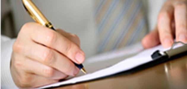 التوقيع: يُوقع الكاتب باسمه كاملاً ويكتب في الزاوية اليسرى السفلى.