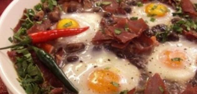 5. اسكبي البيض فوق الفول مع الحرص على توزيعه بالتساوي.