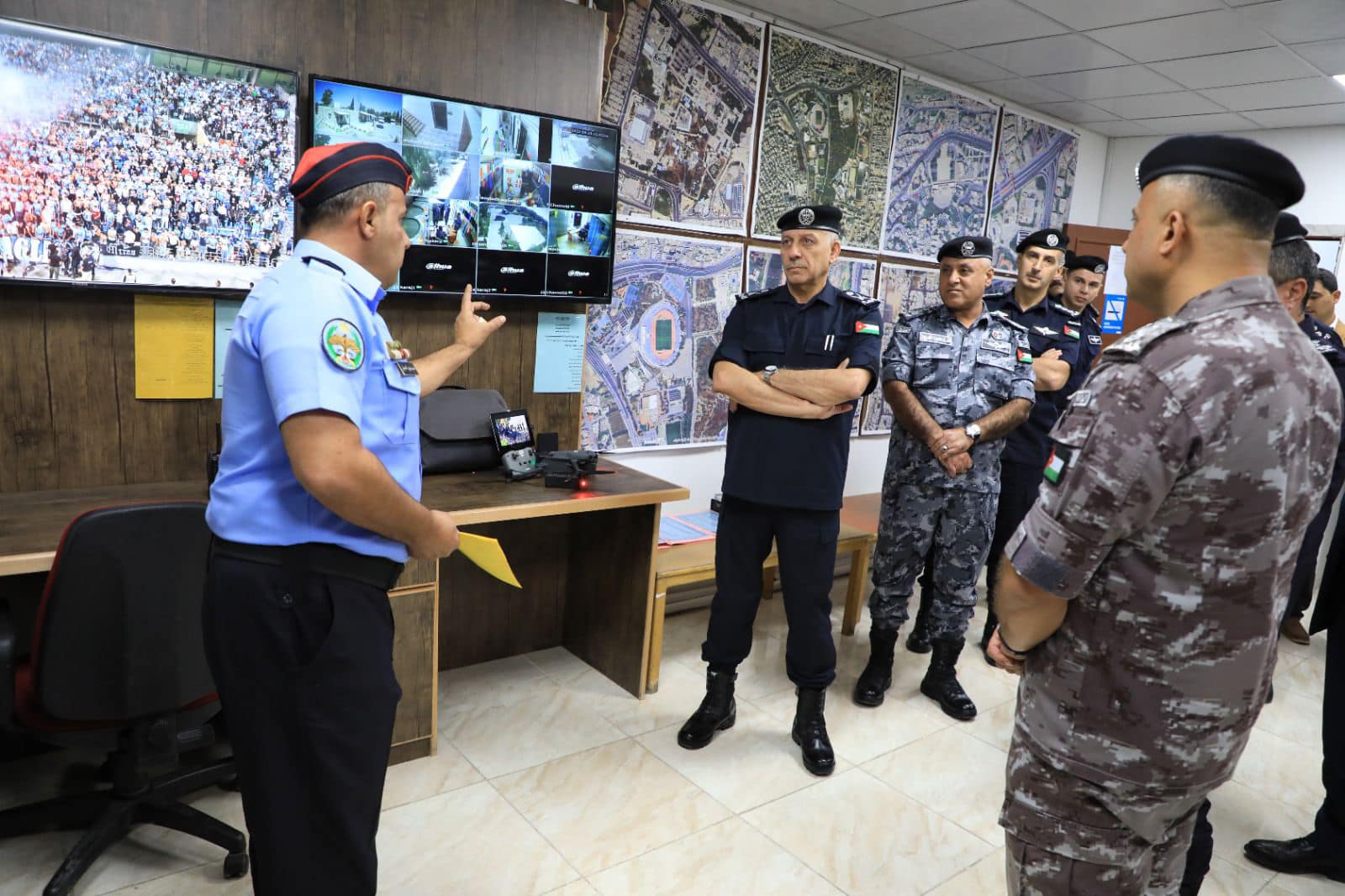 واستمع اللواء المعايطة إلى إيجاز قدمه قائد وحدة أمن الملاعب أوضح خلاله الخطط والبرامج ، والإجراءات الأمنية والتنظيمية المتبعة لإنجاح المواسم الرياضية المحلية والدولية التي تقام على أرض المملكة.