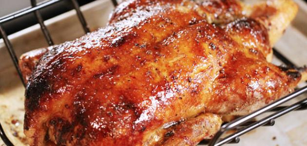 7. بعد نضج البطة، ندهنها بالصلصة المحضرة مسبقاً ونرشها بالملح والفلفل الأسود.
