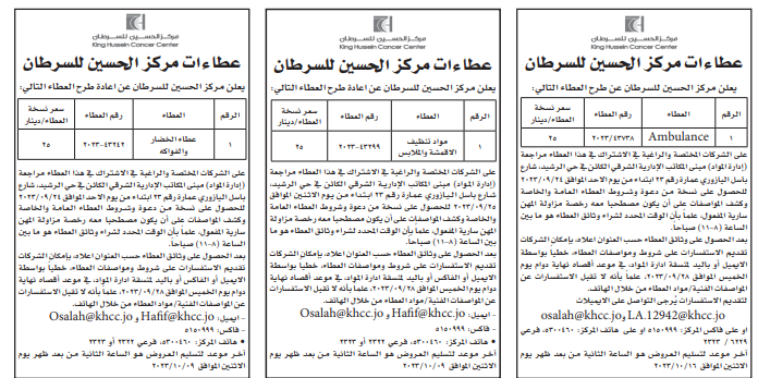 عطاءات صادرة عن مركز الحسين للسرطان