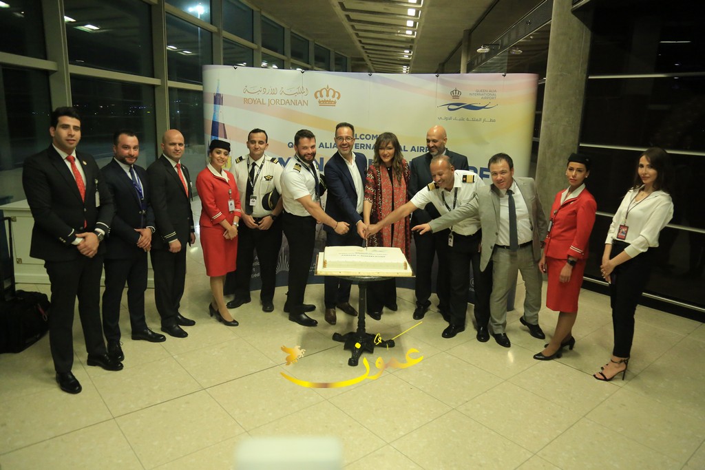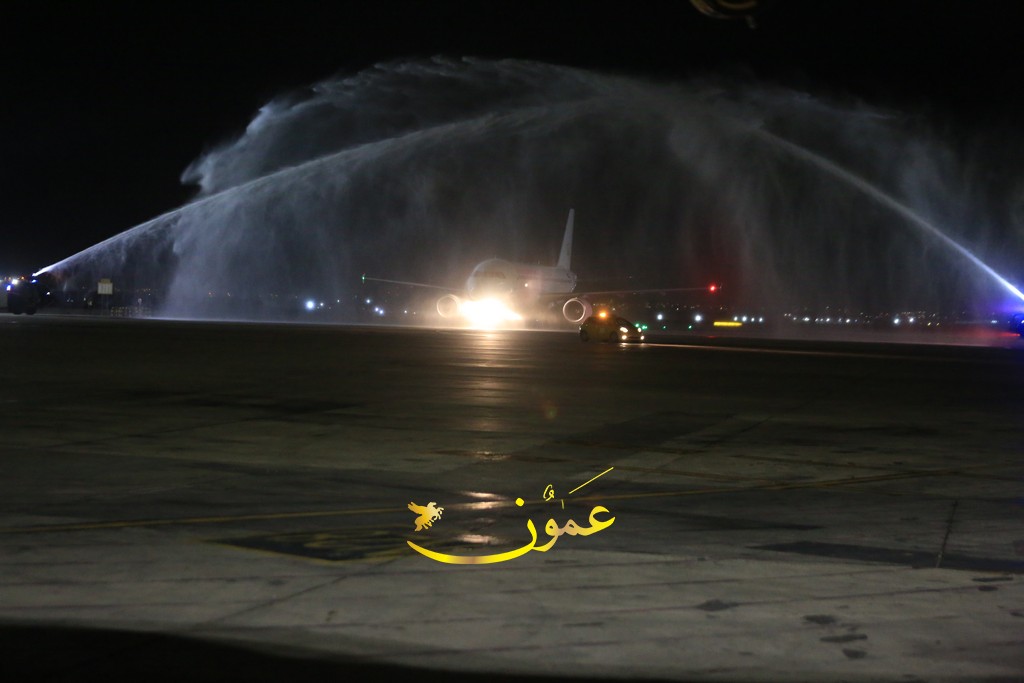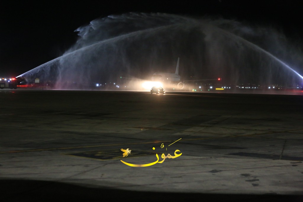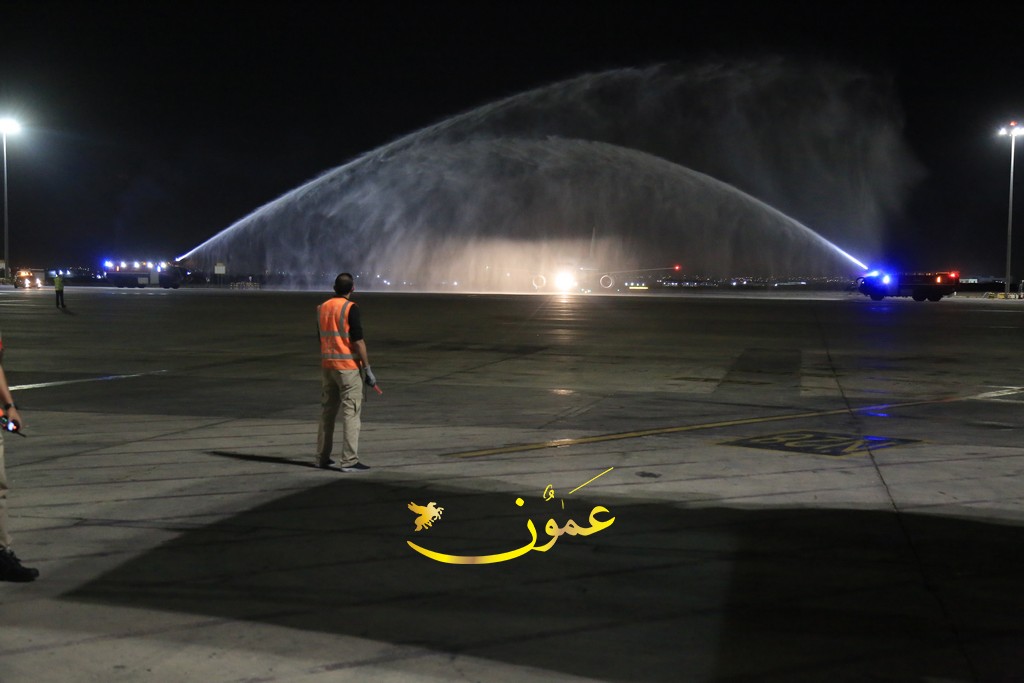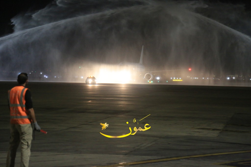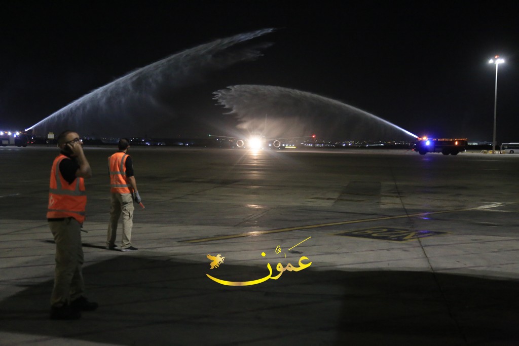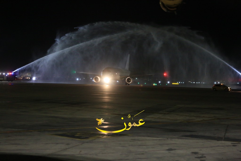 وعند وصولها يوم السبت الموافق 23 أيلول، استُقبِلت الرحلة الأولى بتحية أقواس الماء التقليدية، بحضور ممثلين عن "مجموعة المطار الدولي" والملكية الأردنية.
