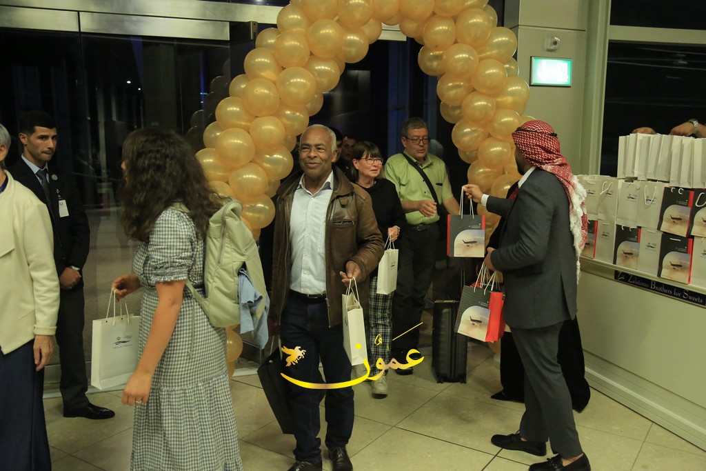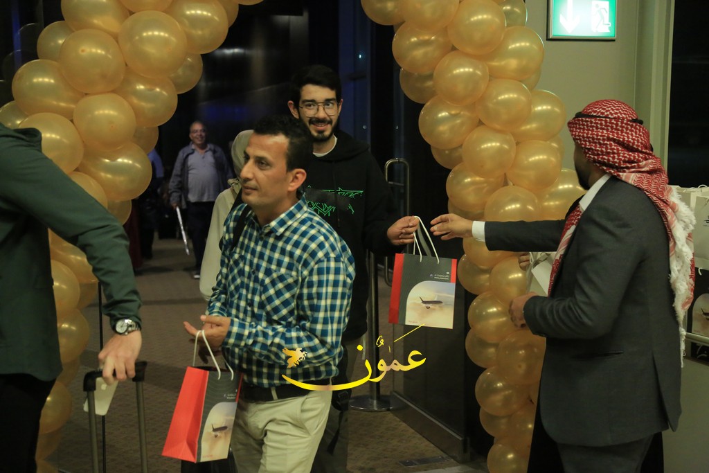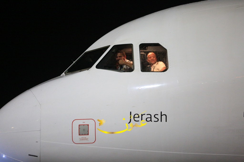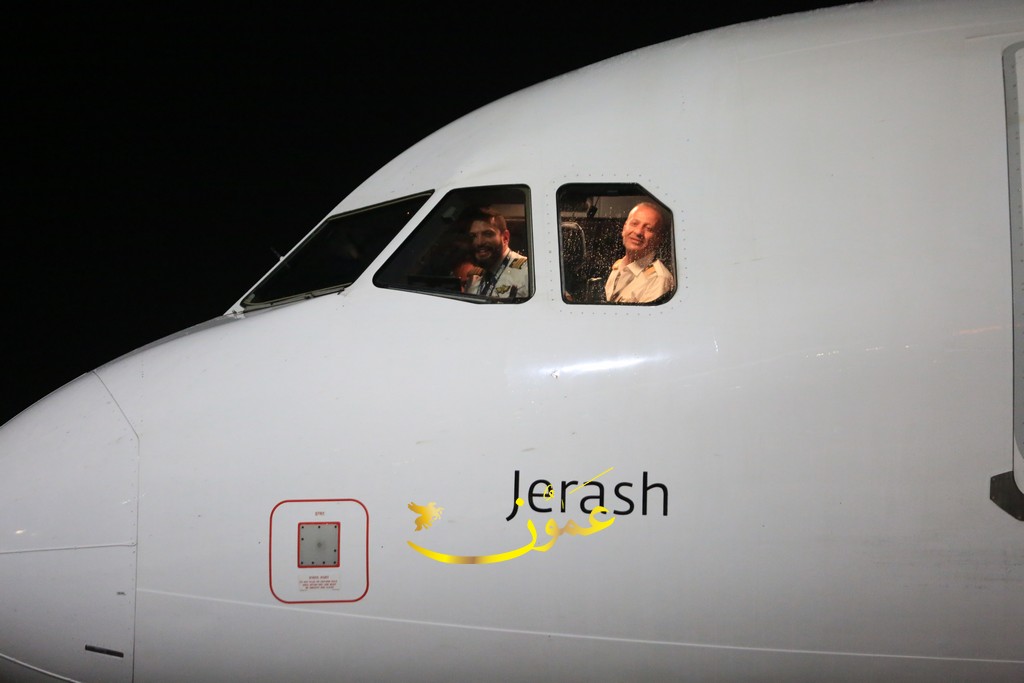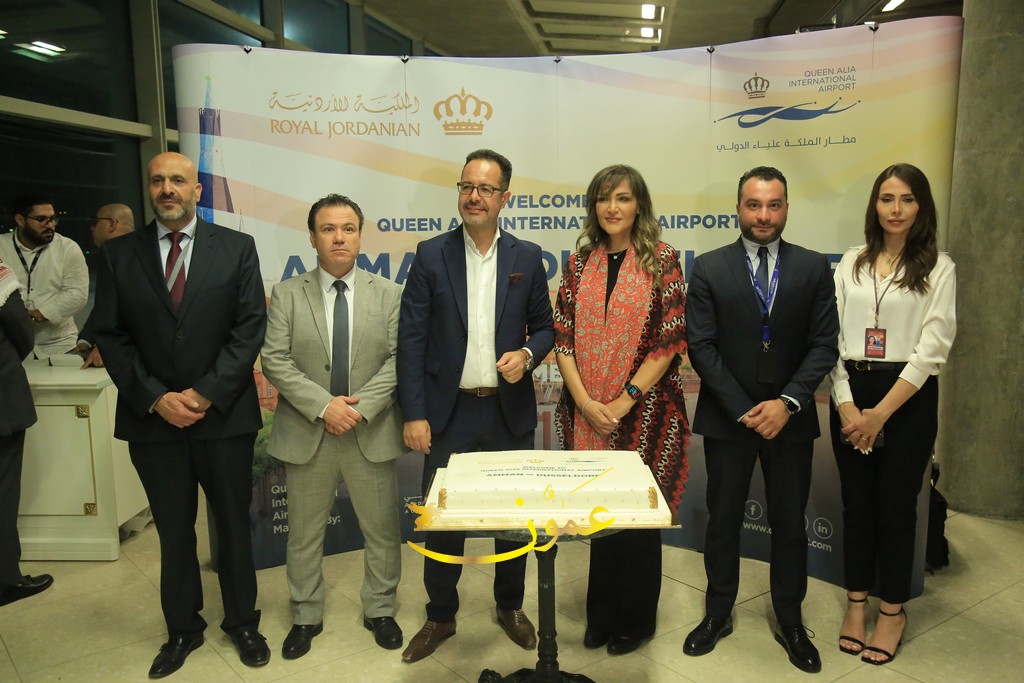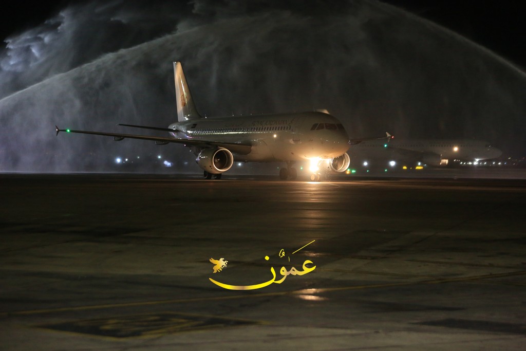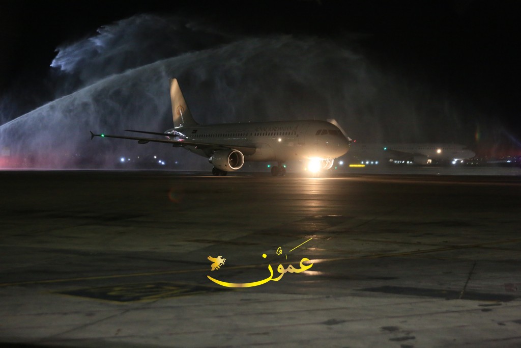 وعند وصولها يوم السبت الموافق 23 أيلول، استُقبِلت الرحلة الأولى بتحية أقواس الماء التقليدية، بحضور ممثلين عن "مجموعة المطار الدولي" والملكية الأردنية.