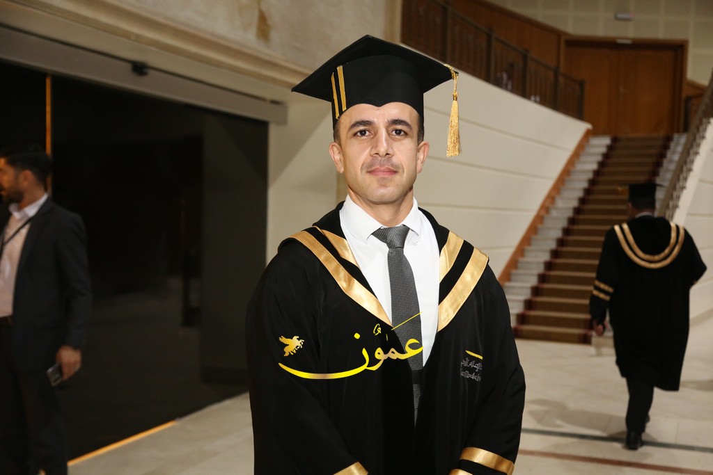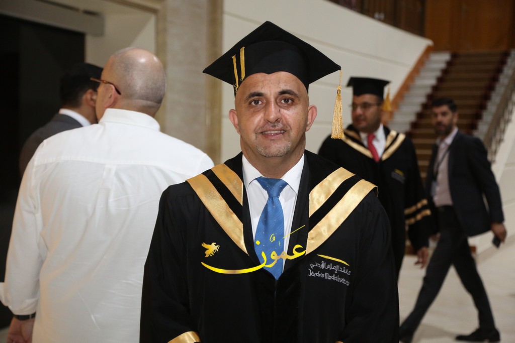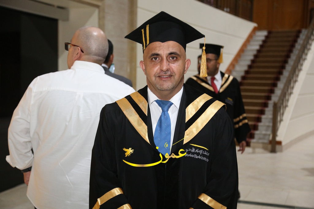 وألقى الطالب حسام حمود دوجان الحياري، الأول على الفوج، كلمة الخريجين، معربا عن سعادته وزملائه وزميلاته بعد اجتيازهم متطلبات برنامج الماجستير خلال عام واحد، الذي امتاز بالعملية التطبيقية والأنشطة اللامنهجية الغنية والثرية.