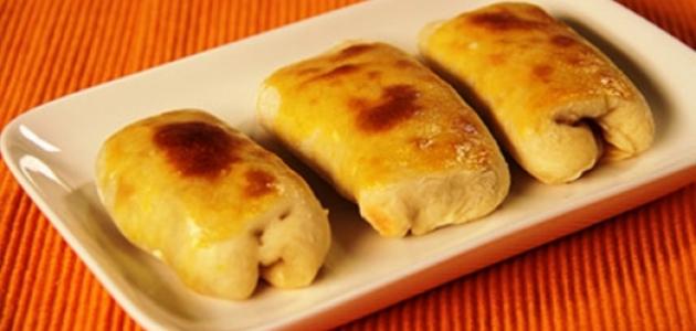 3. قومي بطيّ العجينة حول الحشوة لتكوّن مستطيلًا واحكمي إغلاق الحواف بإصبعك المبلل بالماء.