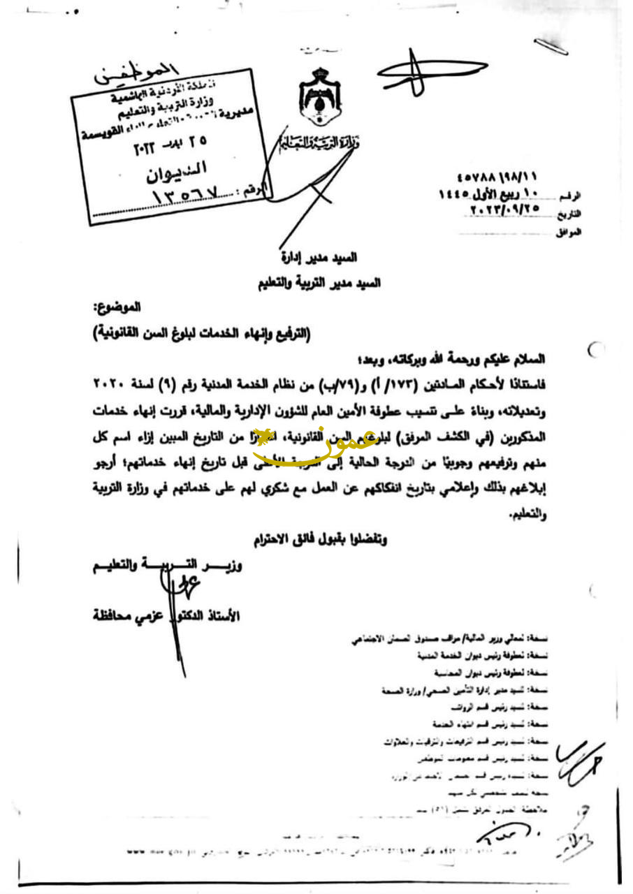 ترفيعات وإنهاء خدمات لـ51 موظفًا في التربية (أسماء)27-09-2023 07:05 PM