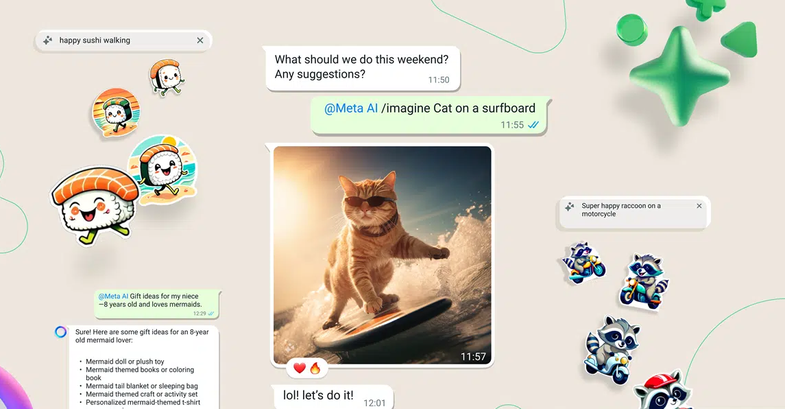 واعتبارًا من اليوم، يمكن لبعض المستخدمين بدء اختبار مزايا التالية في المحادثات مع الأصدقاء وأفراد العائلة، وهي: ملصقات الذكاء الاصطناعي التي تتيح للمستخدمين إنشاء ملصق مخصص يمثل خاطرة أو فكرة مناسبة للدردشة.