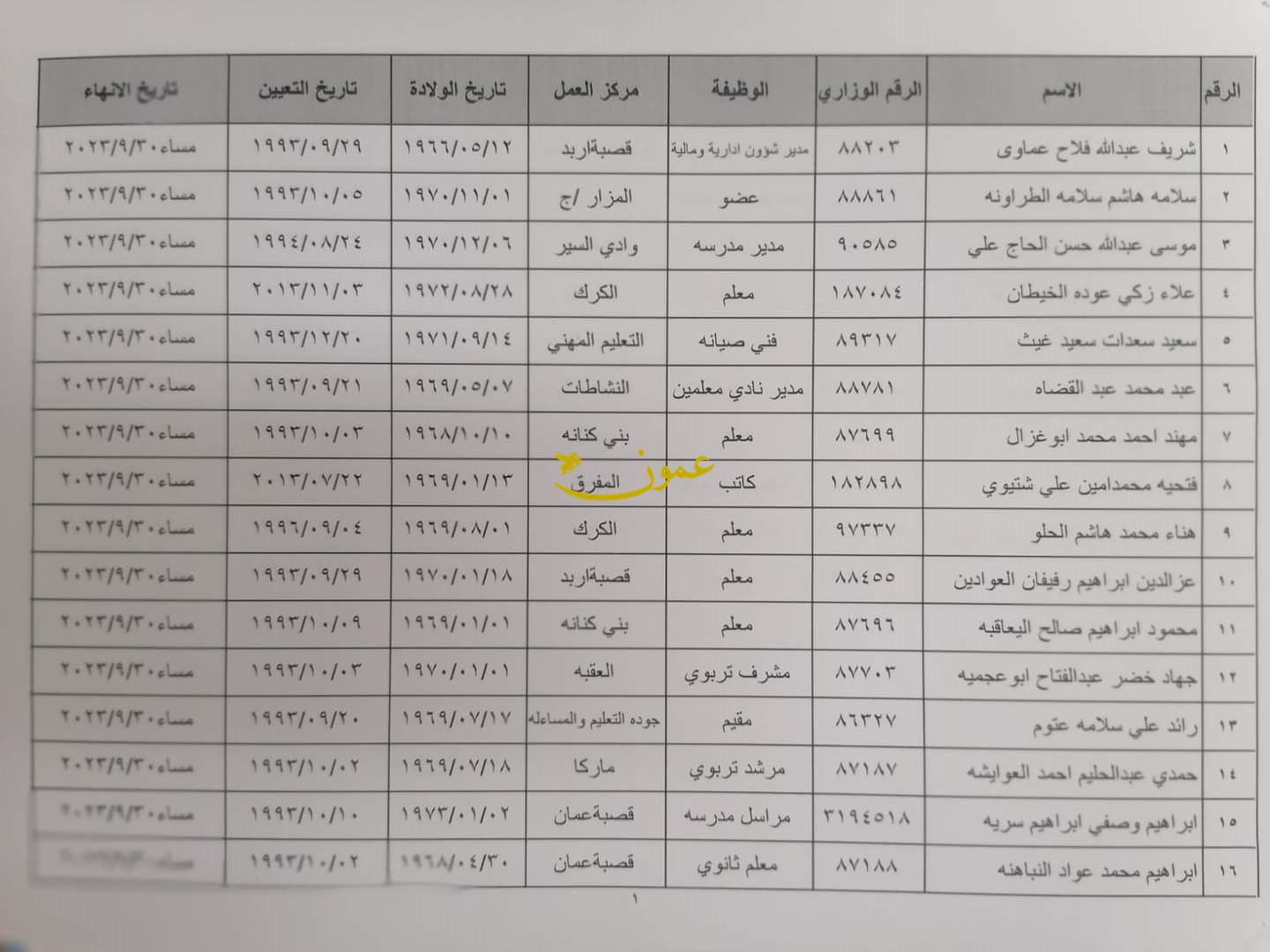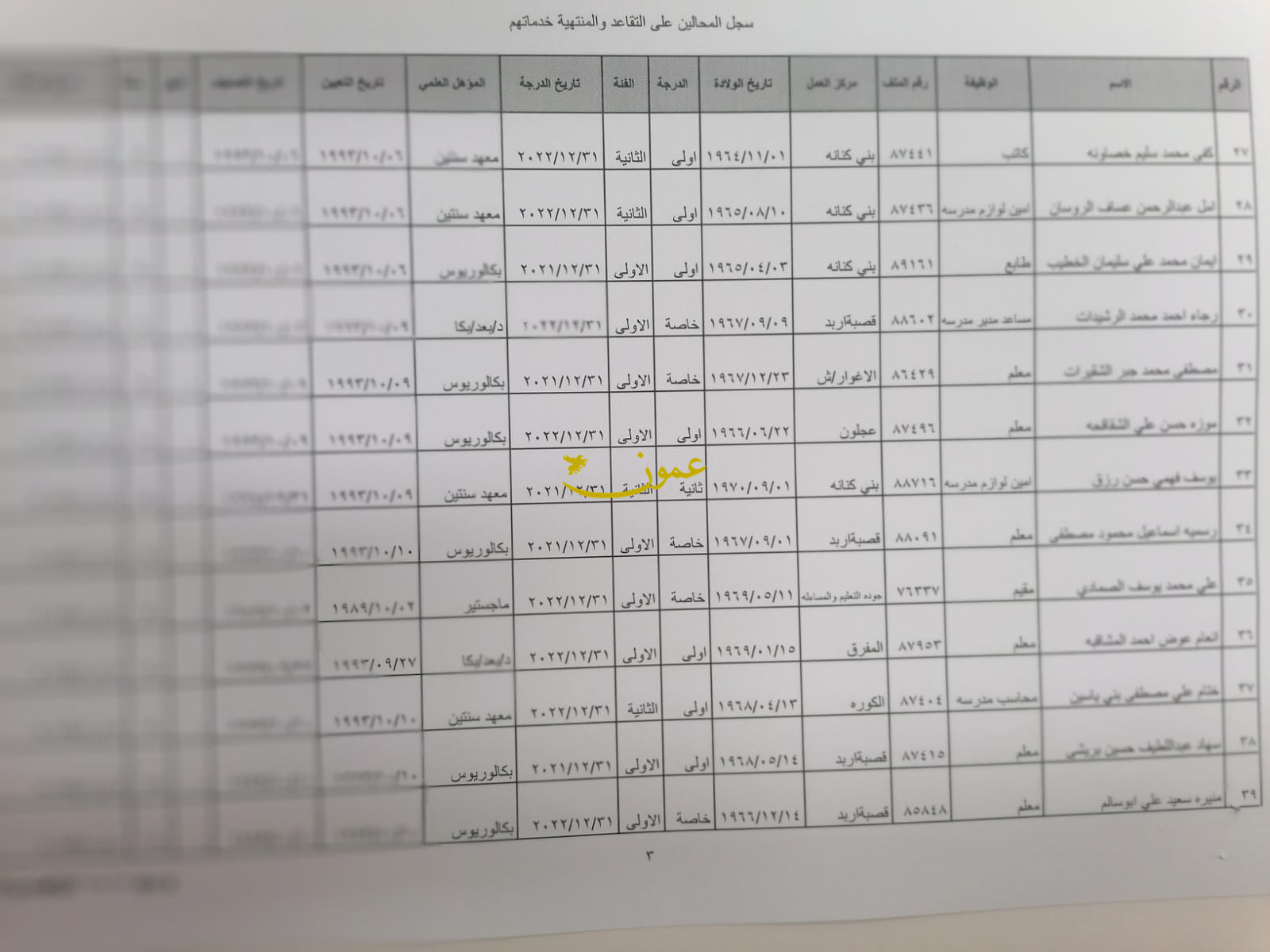 موظفون في التربية والتعليم إلى التقاعد (اسماء)