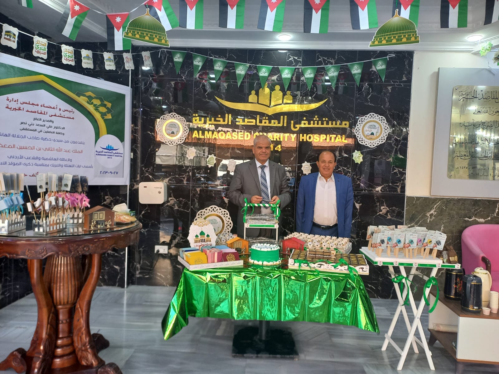 عمون - احتفل مستشفى المقاصد الخيرية التابع لوزارة الأوقاف والمقدسات والشؤون الإسلامية، اليوم الخميس، بمناسبة ذكرى المولد النبوي الشريف، برعاية رئيس مجلس الإدارة مدير عام صندوق الزكاة الدكتور عبد سميرات. |