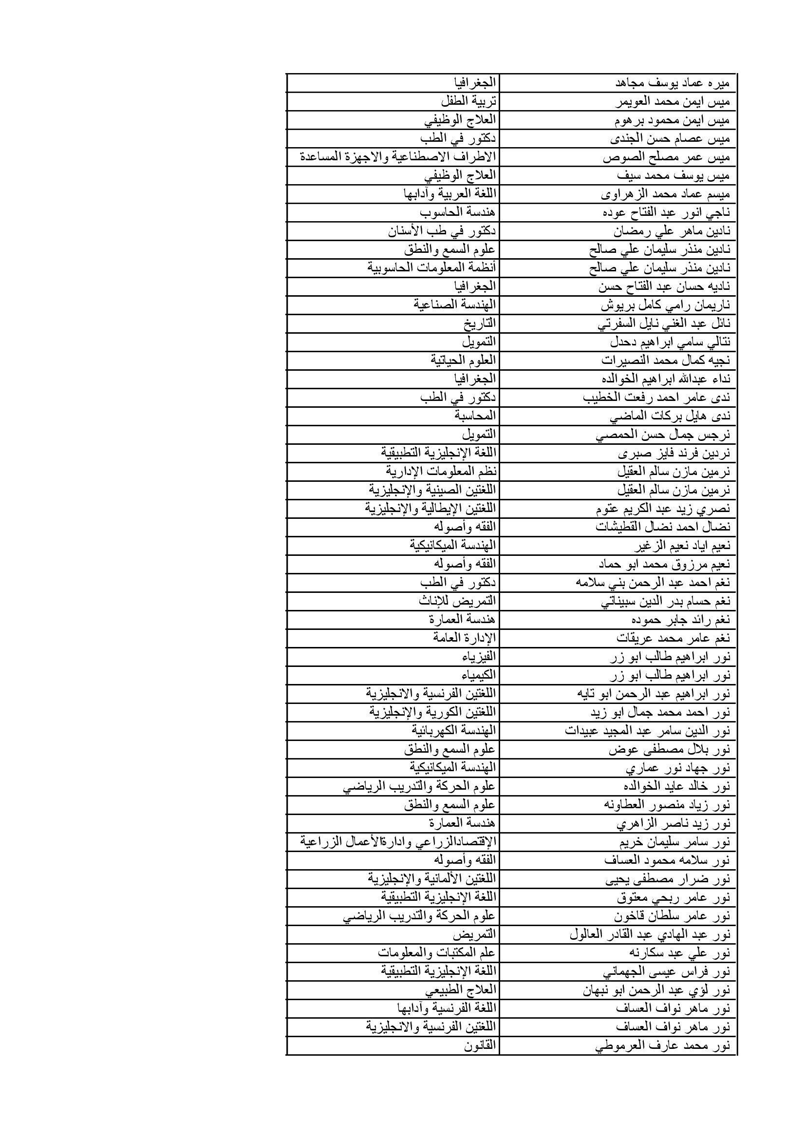 عمون - أعلن المسجل العام في الجامعة الأردنية الدكتور أشرف العدوان، عن أسماء الطلبة المرشحين للقبول في البرنامج الموازي/الدفعة الأولى.