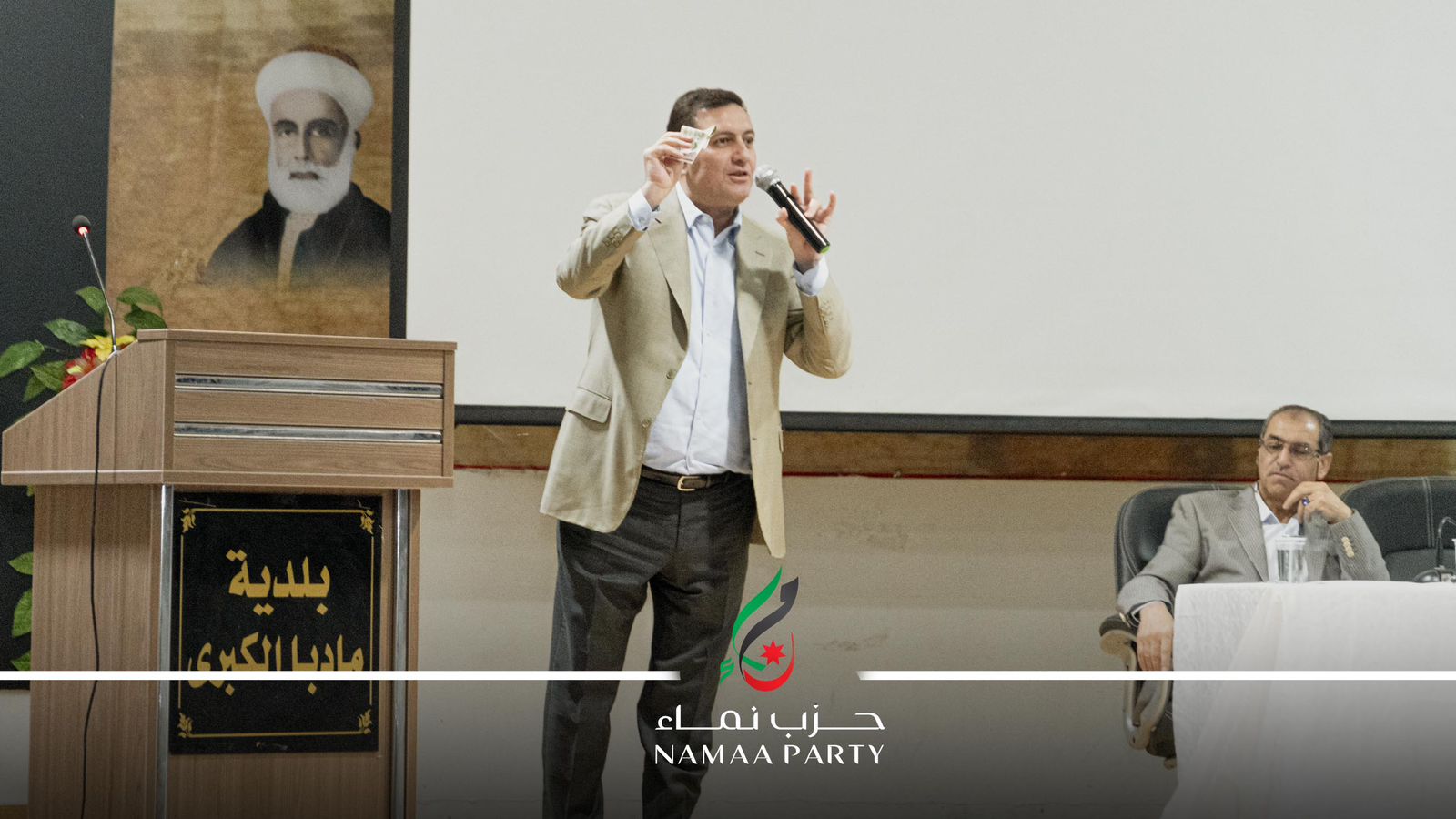 وبين الأمين العام لحزب نماء الدكتور محمد الرواشدة في كلمة له مدى سعادته بتواجده بين الاهل والاصدقاء في مادبا وتطلعات الحزب المستقبلية في الوصول إلى كافة مناطق الوطن وتشجيع الجميع للانخراط في الحياة الحزبية وإن حزب نماء يسعى بالدرجة الاولى الى خدمة أعضاء الحزب والمواطنين وزيادة الوعي الحزبي من خلال برامج قابلة للتنفيذ.