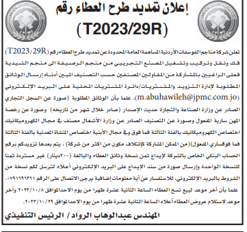 عطاءات صادرة عن شركة مناجم الفوسفات