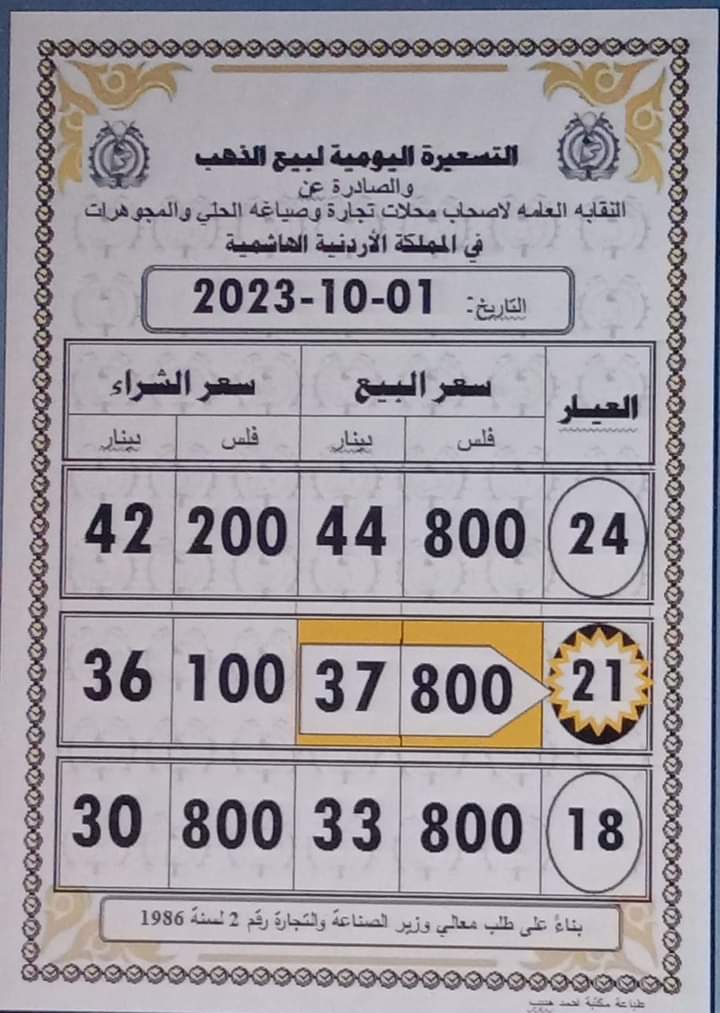 أسعار الذهب في السوق المحلي الأحد01-10-2023 10:13 AM