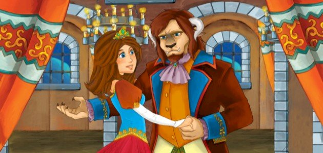 الوحش الذي يعيش في القلعة أخبر التاجر أنه سيسامحه إذا أحضر له ابنته الصغيرة. اضطر التاجر لإحضارها واستسلم للظروف.