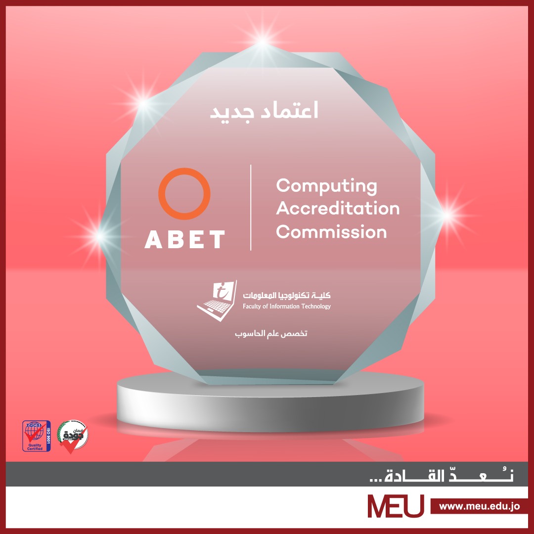 عمون – حصل برنامج علم الحاسوب في كلية تكنولوجيا المعلومات بجامعة الشرق الأوسط على اعتماد (ABET) الأمريكي، لينضم بذلك إلى برنامجيّ الهندسة المدنية، وهندسة الطاقة المتجددة في كلية الهندسة.