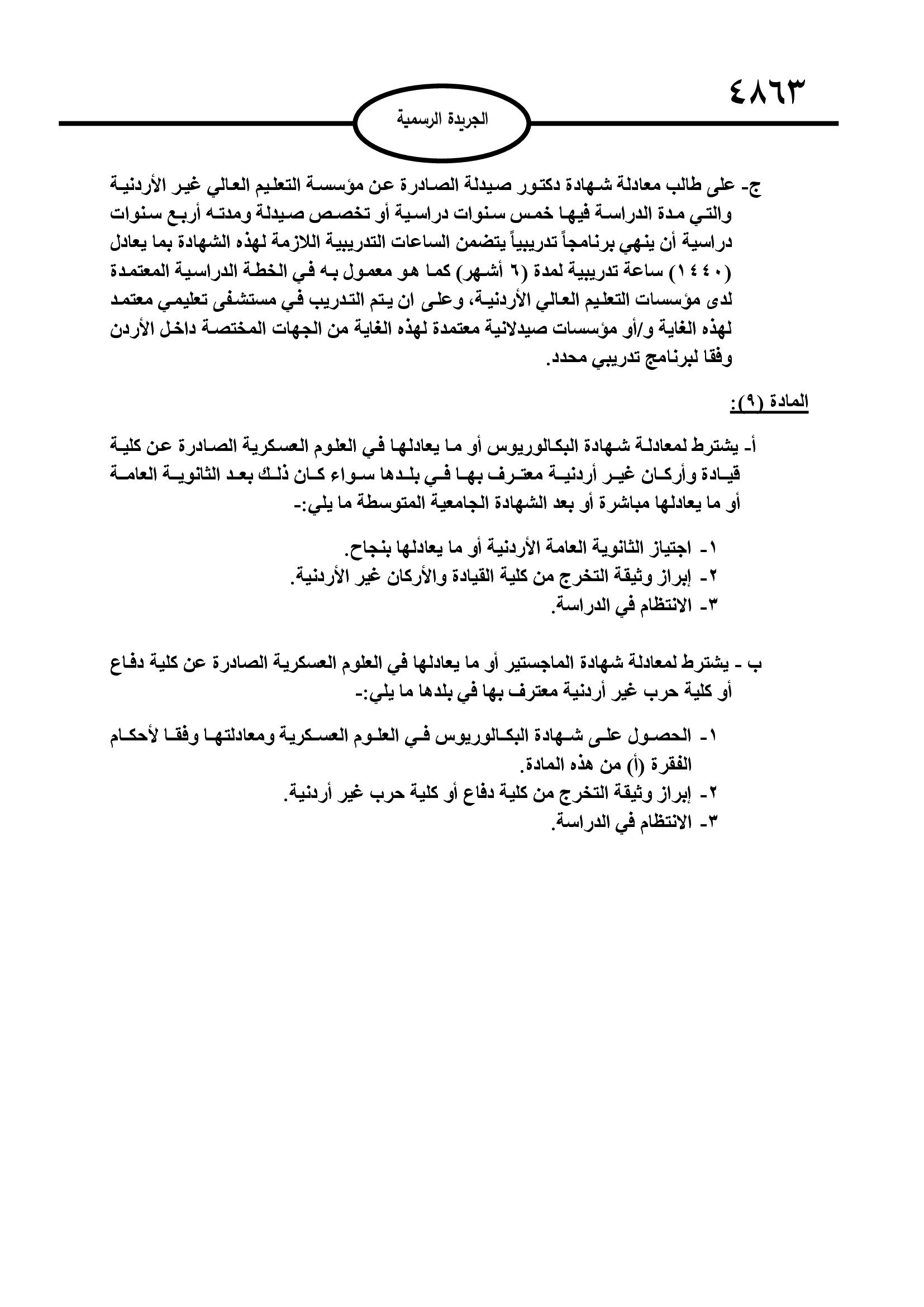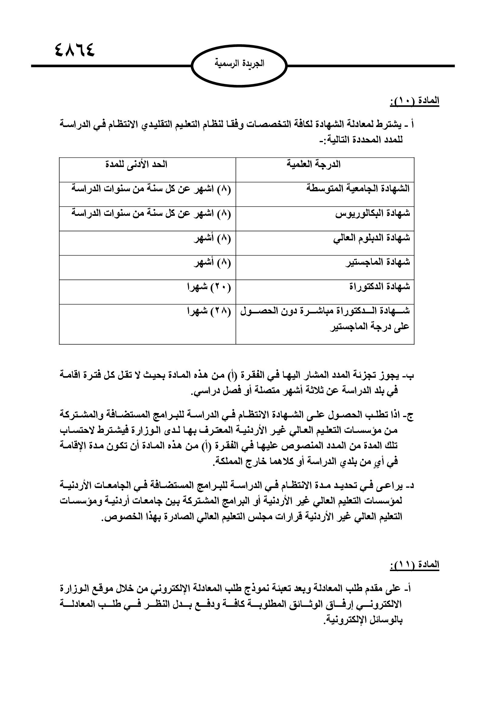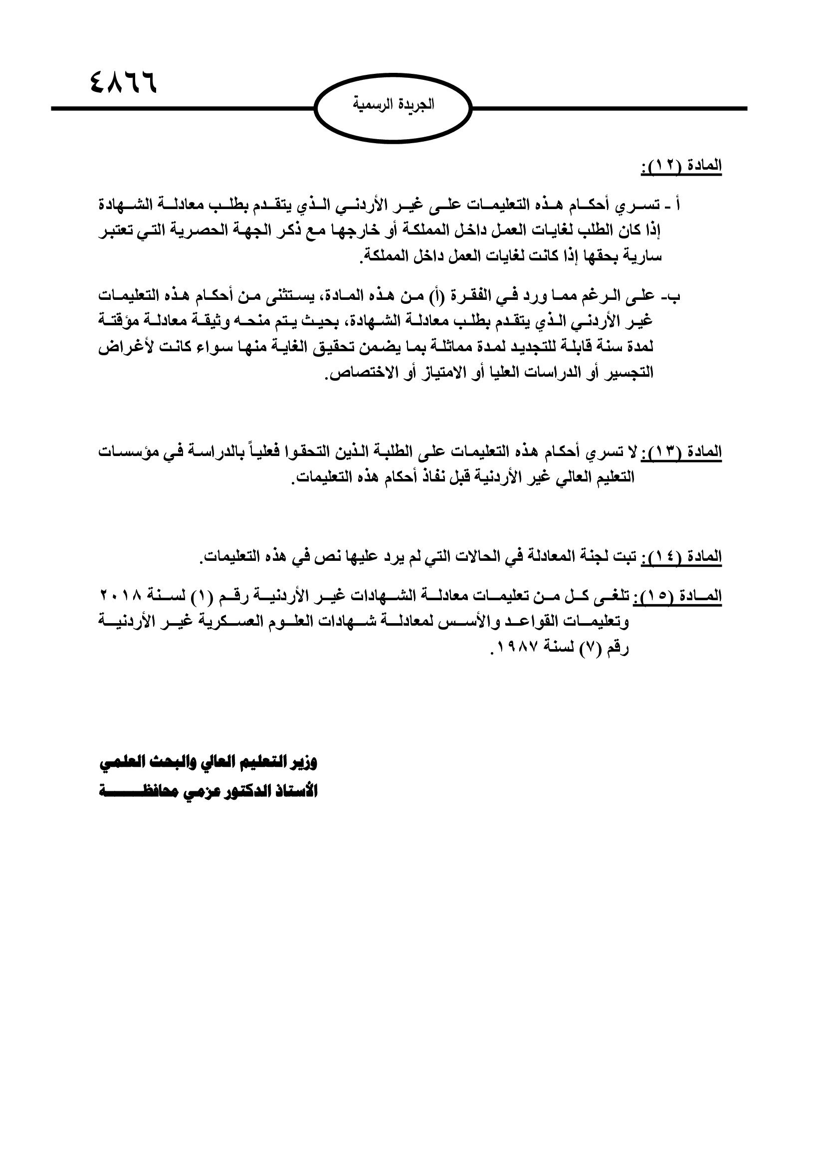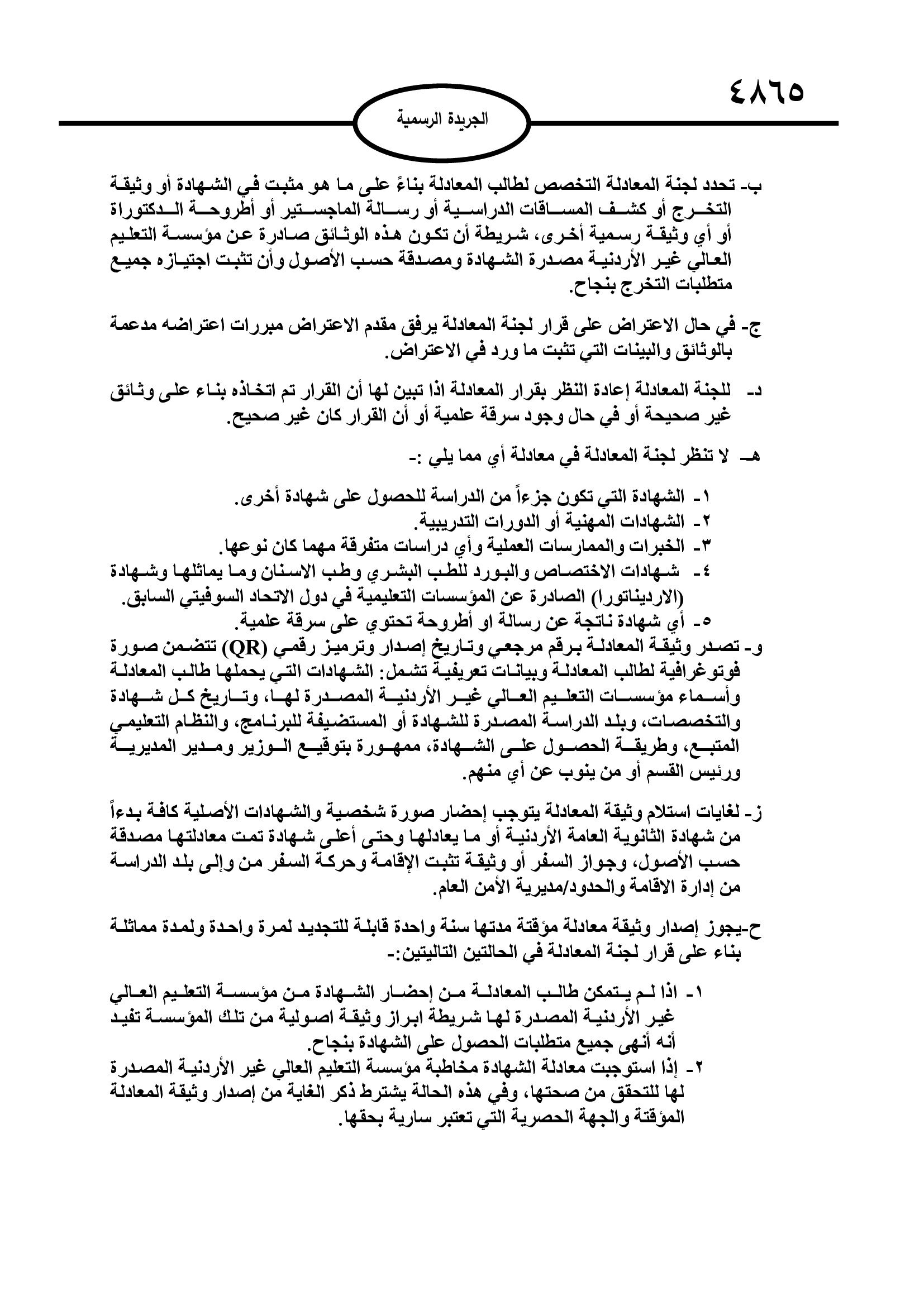 *صدور تعليمات معادلة الشهادات غير الأردنية